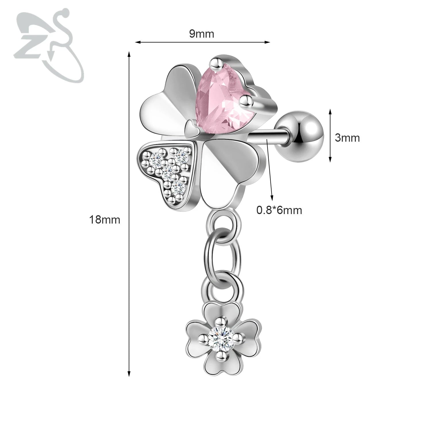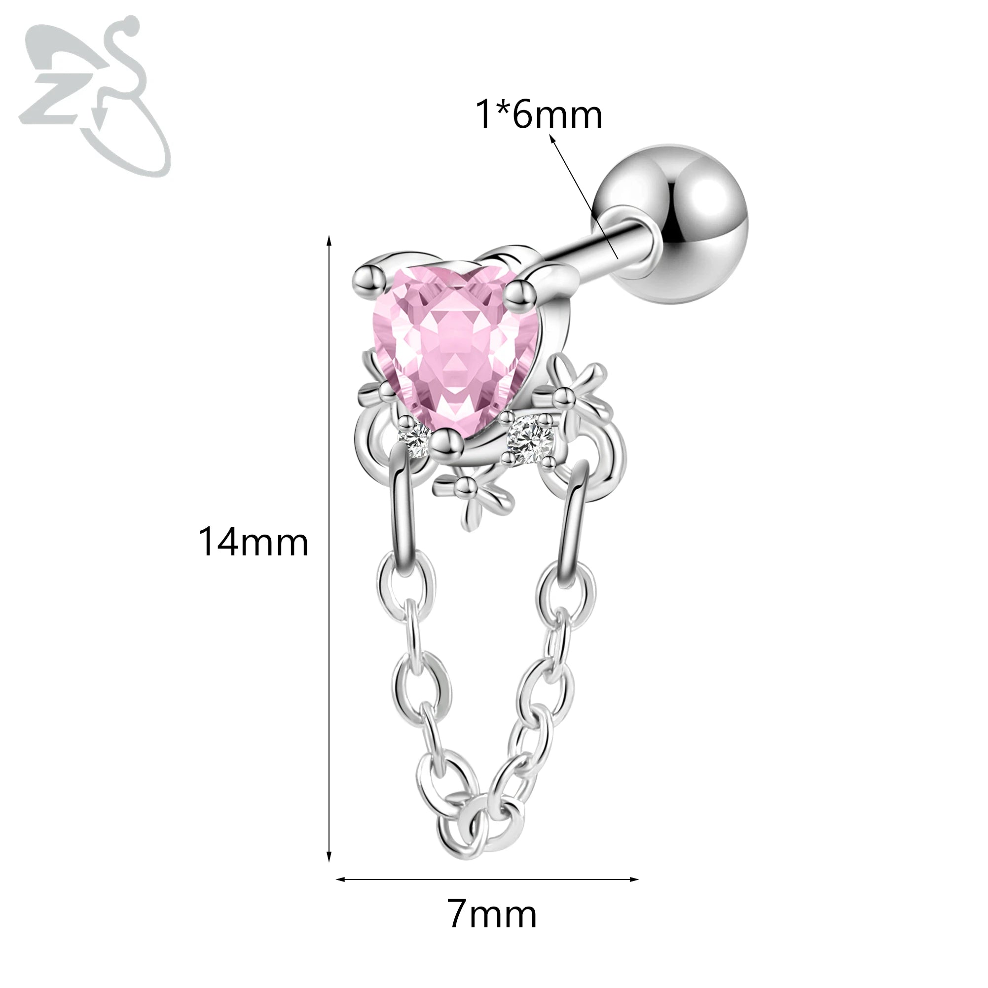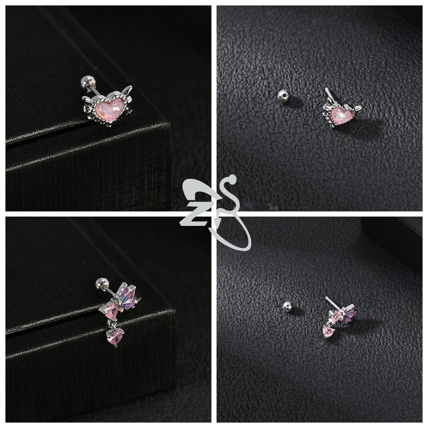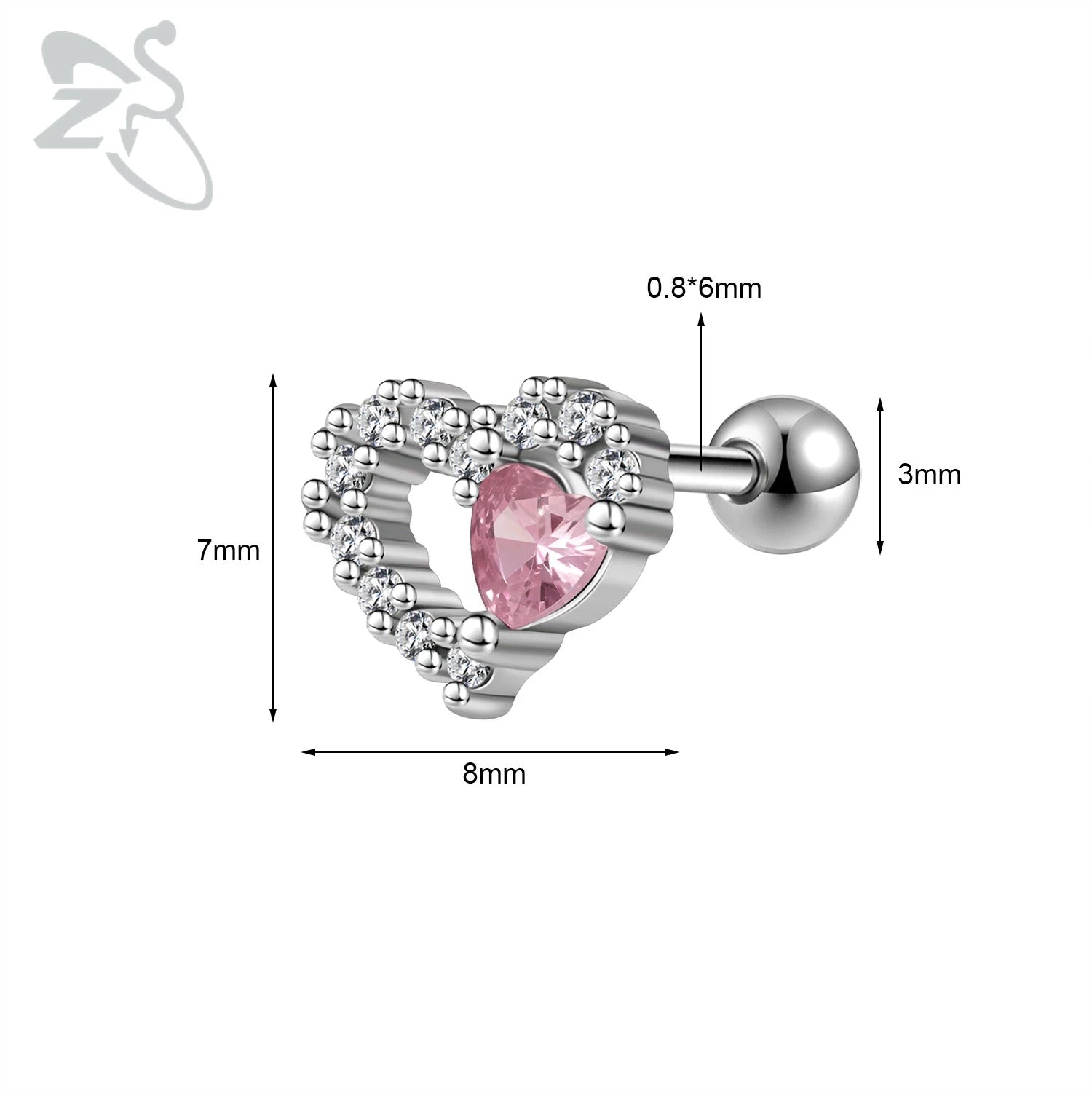 ZS-Boucles d'Oreilles en Forme de Cœur pour Femme, Bijoux Rose CZ, 20g, 1 Pièce