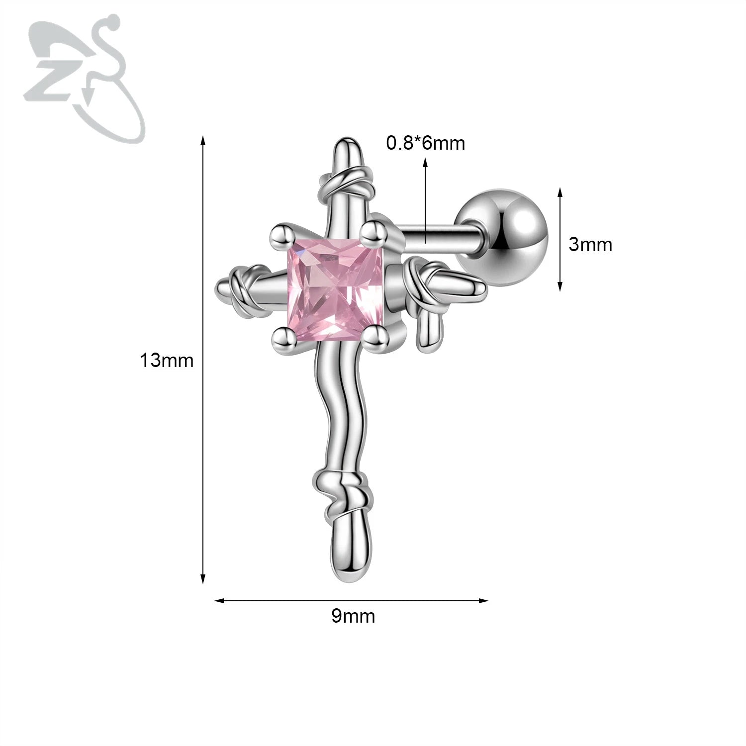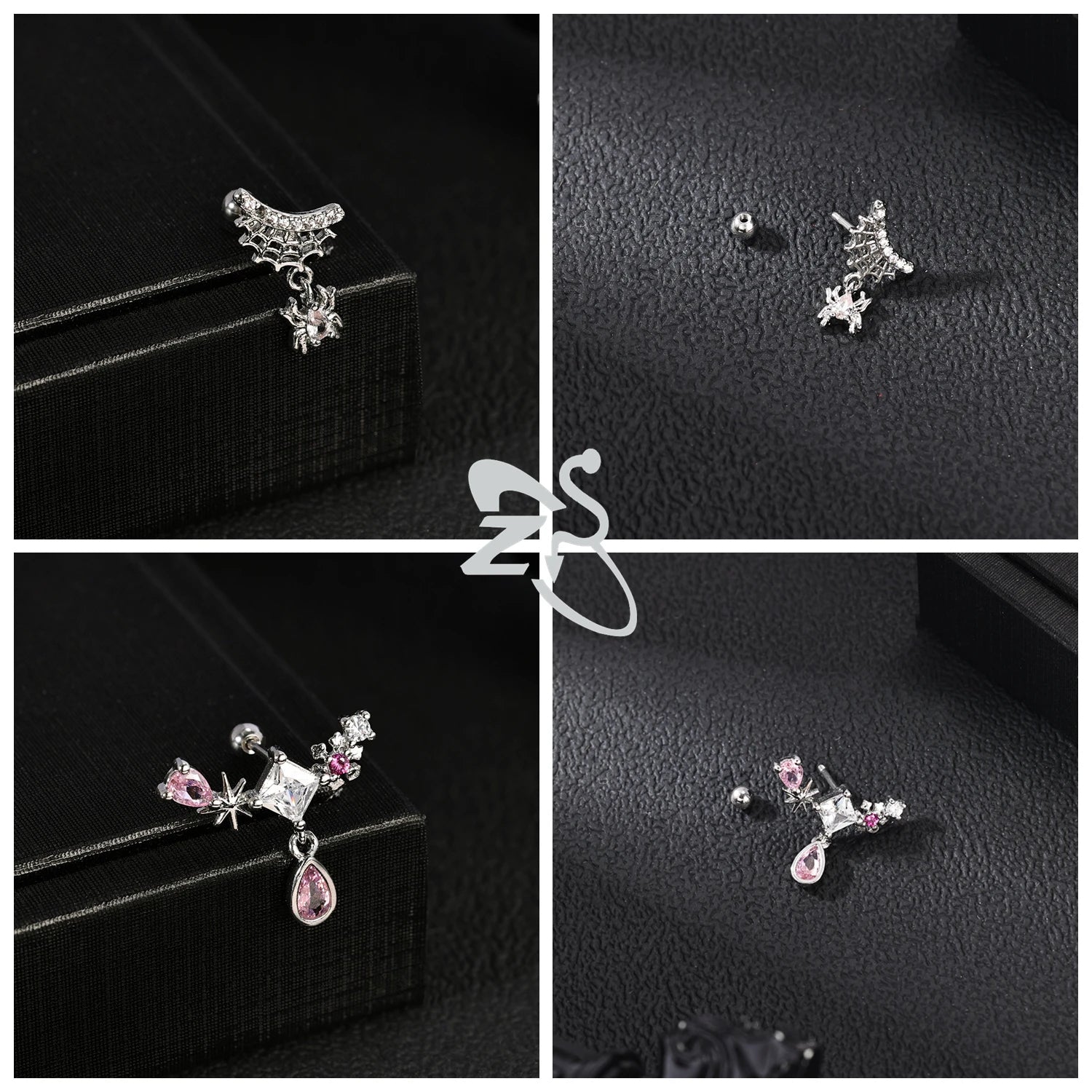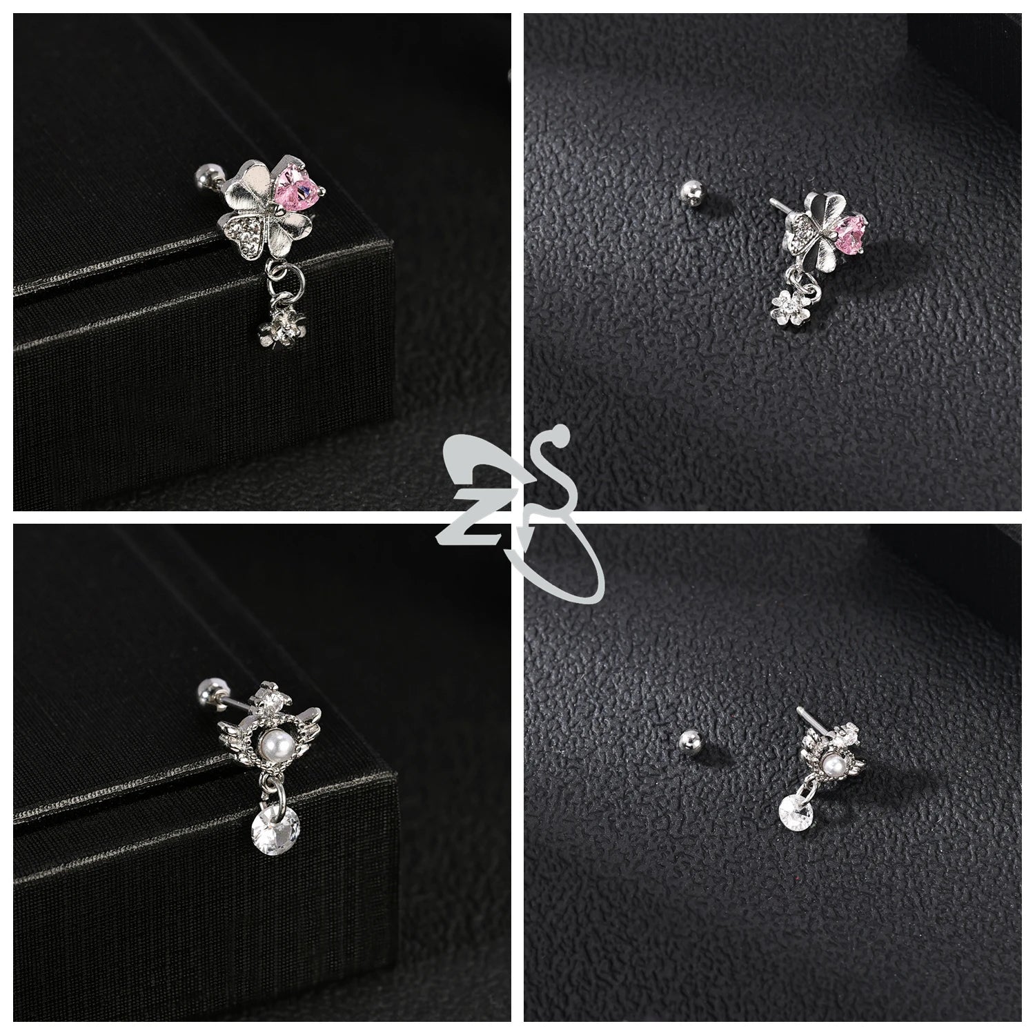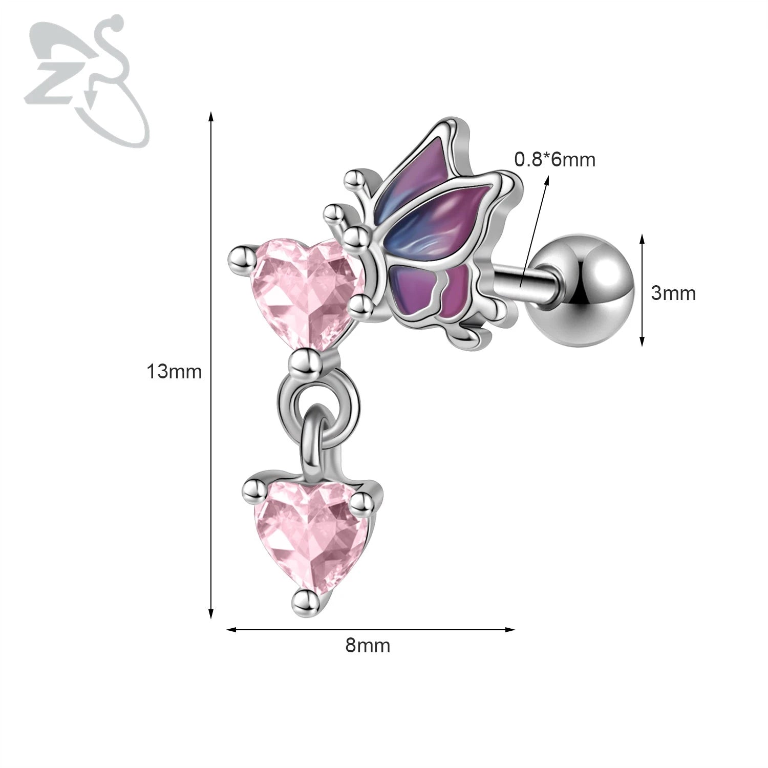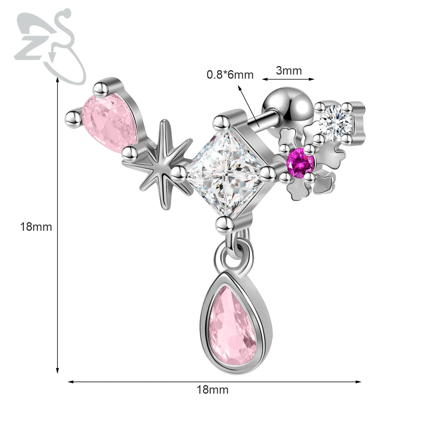 ZS-Boucles d'Oreilles en Forme de Cœur pour Femme, Bijoux Rose CZ, 20g, 1 Pièce