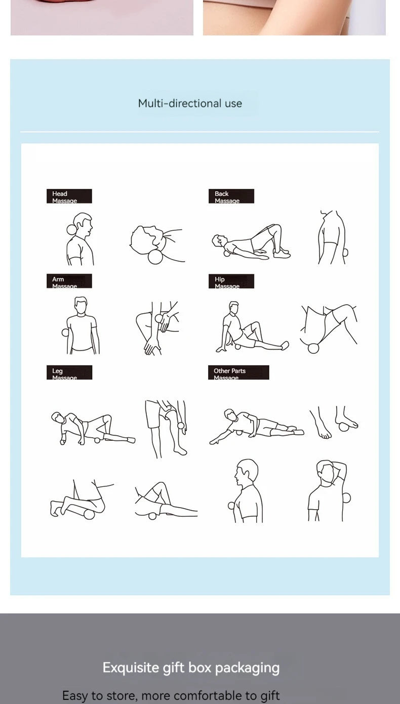 Placez la balle sur la zone à traiter et appliquez une légère pression ou effectuez des mouvements de rotation pour stimuler les points de tension. Sa taille et sa texture permettent une utilisation précise, que ce soit pour des exercices de relaxation ou des massages thérapeutiques. Aucun accessoire supplémentaire n’est requis pour profiter pleinement de ses bienfaits.