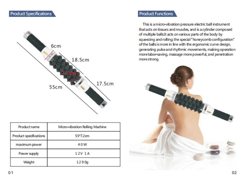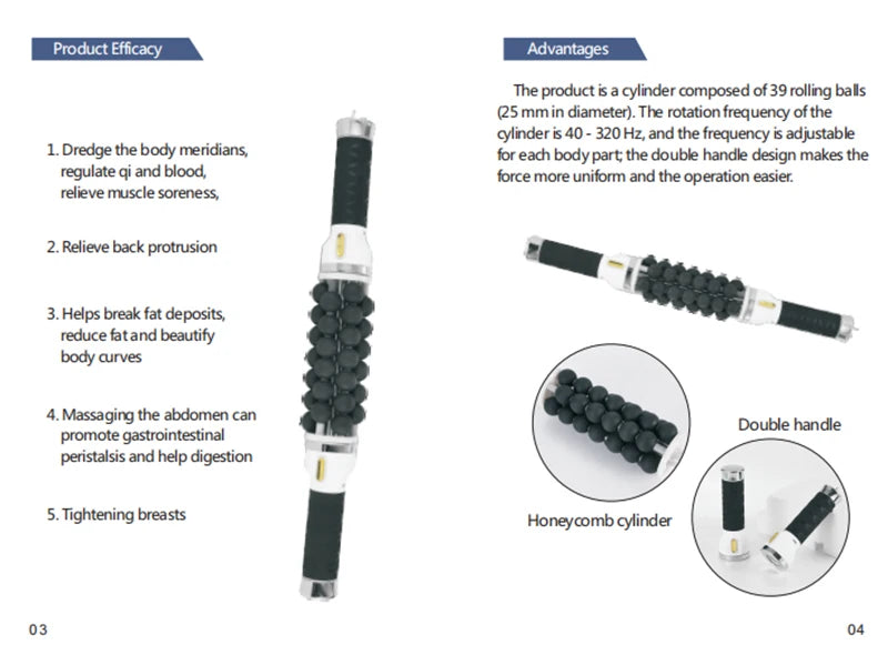 L’appareil s’utilise en positionnant le cylindre sur les zones ciblées du corps. Grâce à sa fréquence ajustable, il est possible d’adapter le massage à différentes parties – du dos aux abdominaux – pour optimiser la stimulation et le bien-être général. Sa mise en service est simple et immédiate : branchez le dispositif et choisissez le mode souhaité pour profiter d’un massage complet à domicile.