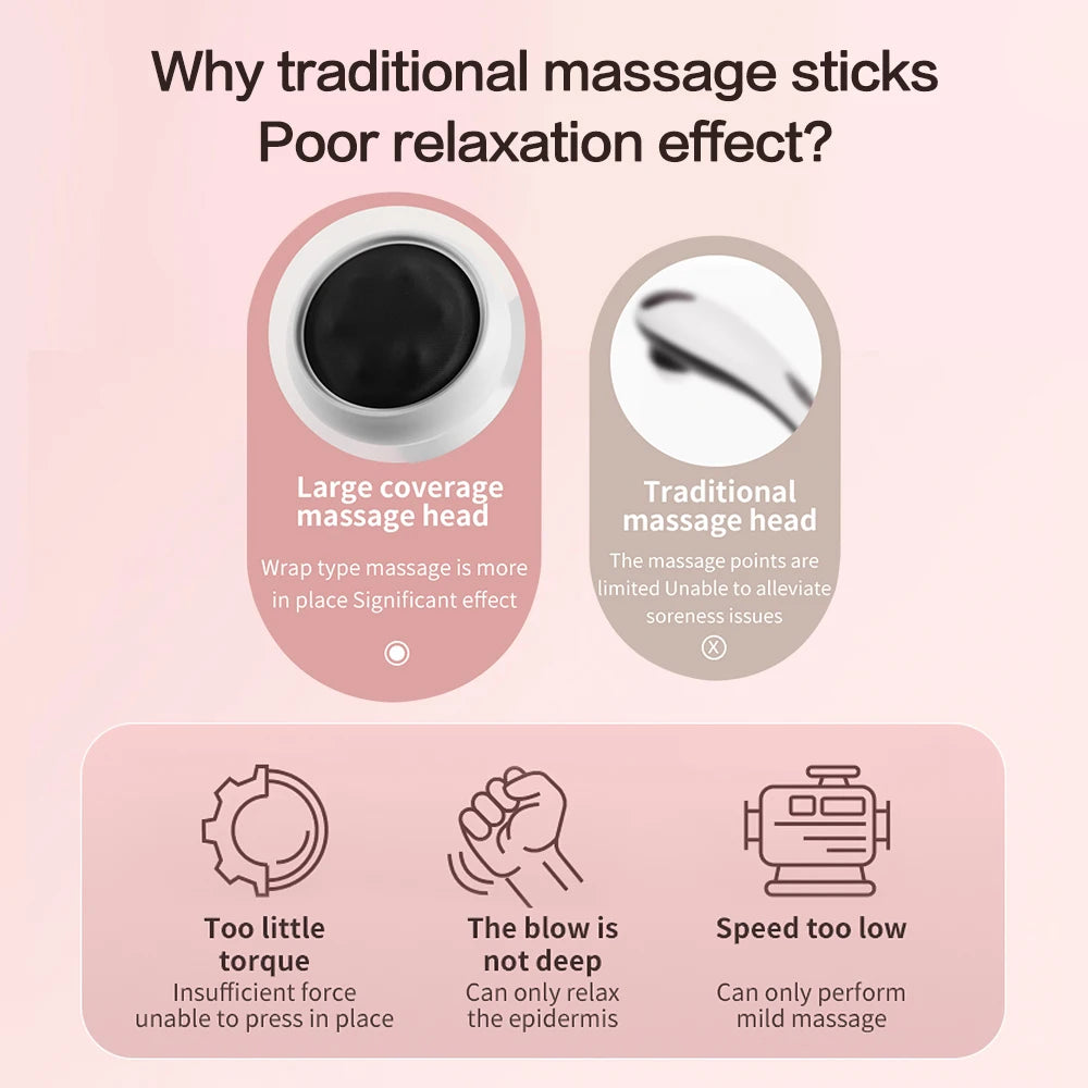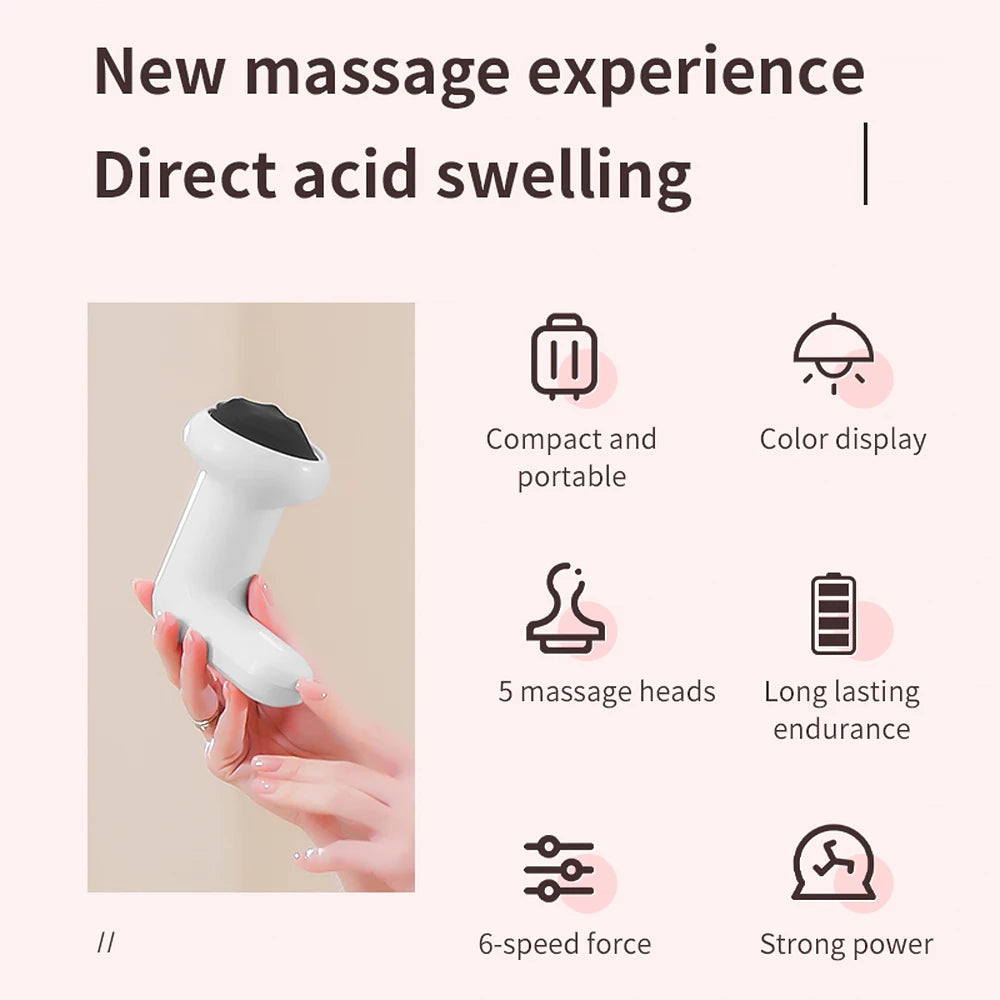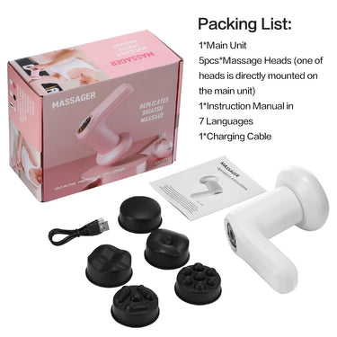 • Personnalisation du massage grâce à cinq têtes de massage interchangeables, spécialement conçues pour cibler différentes zones du corps (hanches, jambes, bras, abdomen, etc.).