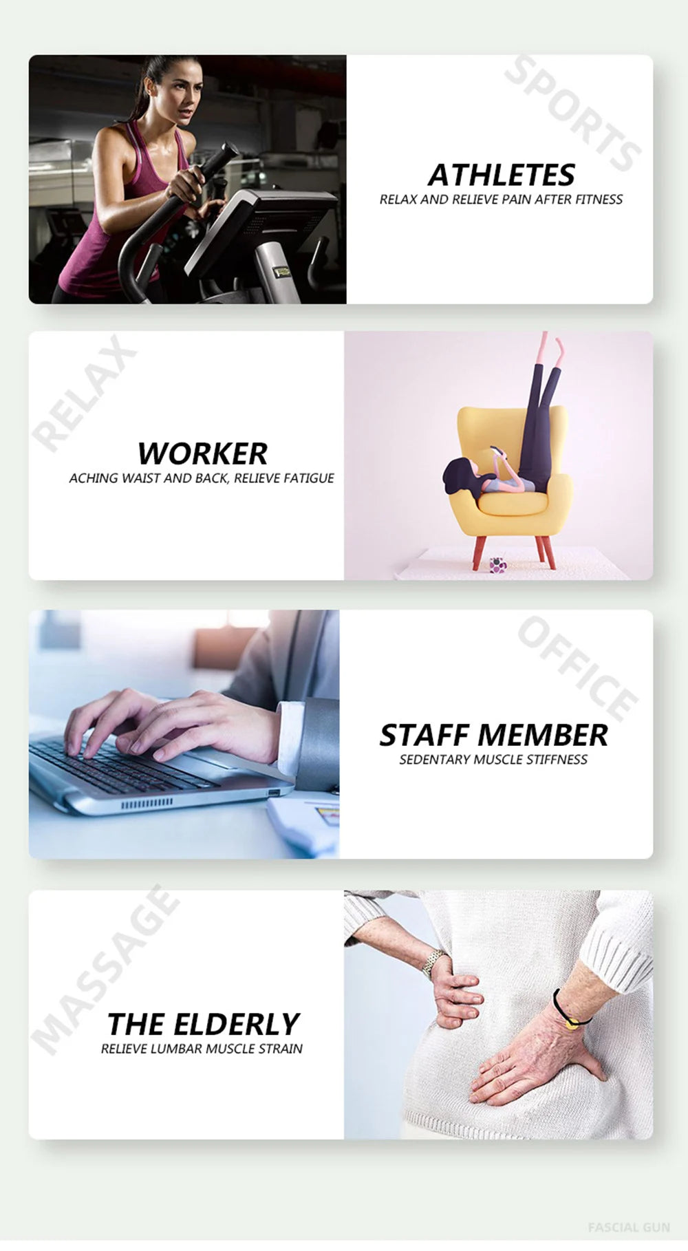 • Conçu exclusivement pour le corps, il s’adresse à ceux qui cherchent à optimiser leur récupération et à vivre une expérience de massage professionnelle.