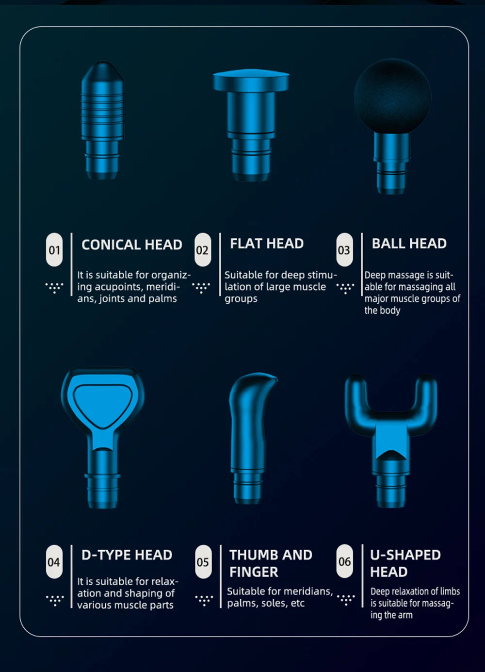 • Choisissez la tête de massage adaptée à votre besoin (6, 12 ou 14) et appliquez sur les zones ciblées pour un effet de percussion précis.