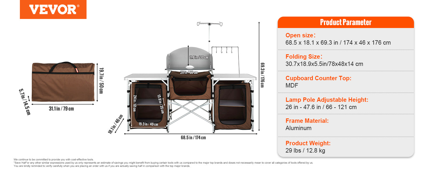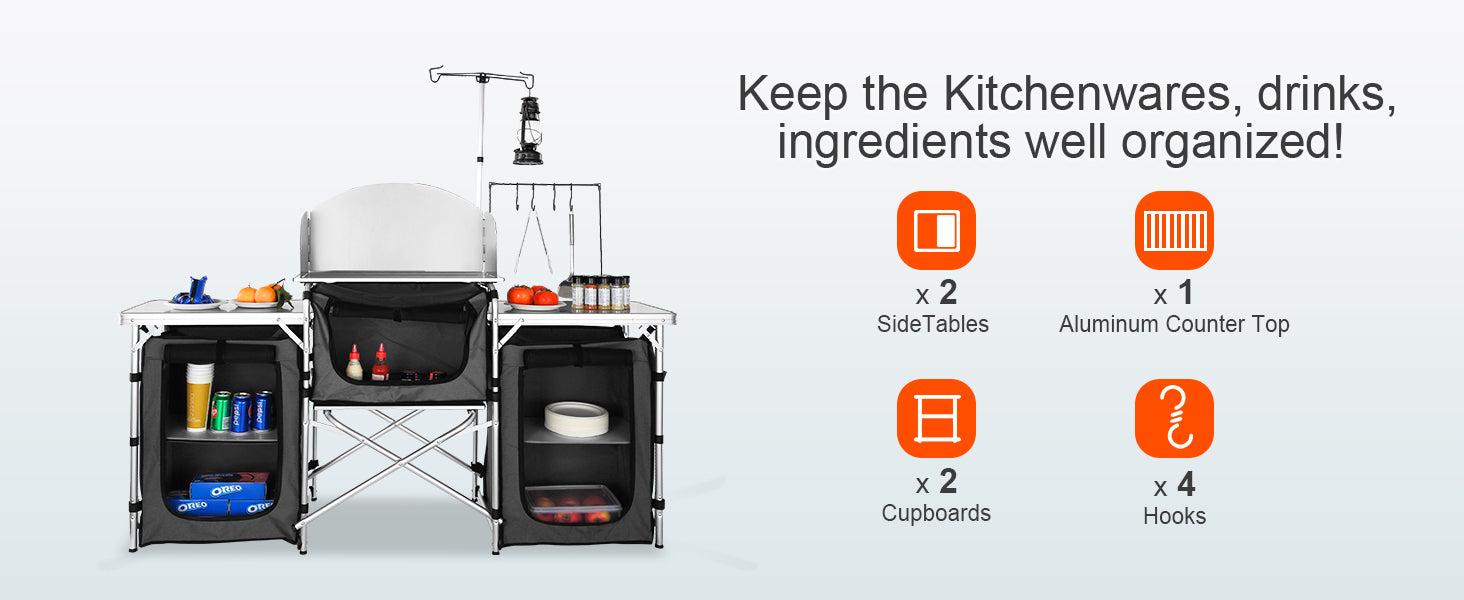 Découvrez la solution idéale pour des moments gourmands en plein air avec cette table de cuisine de camping VEVOR. Alliant design moderne, robustesse et praticité, elle se distingue par sa conception ingénieuse qui optimise l’espace de préparation et de rangement lors de vos escapades. Sa structure pliante, pensée dans le détail, vous garantit une installation rapide et une utilisation simplifiée, le tout sans outil.