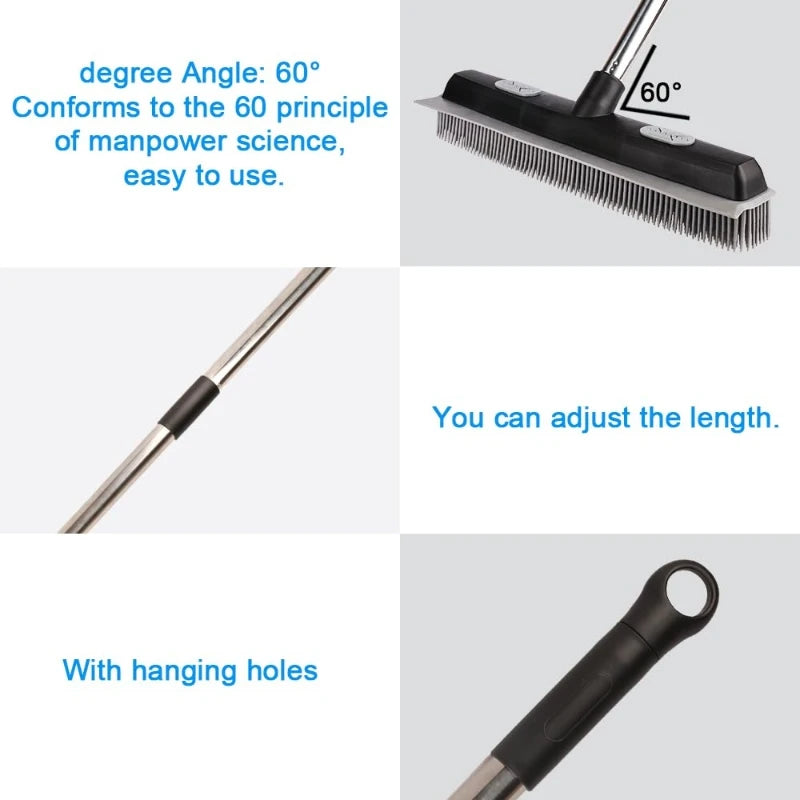 Découvrez l'efficacité et la praticité réunies dans ce balai en caoutchouc spécialement conçu pour éliminer poils d’animaux et résidus sur tapis pelucheux et sols en bois dur. Son design innovant et ergonomique vous garantit un nettoyage rapide et sans effort au quotidien.