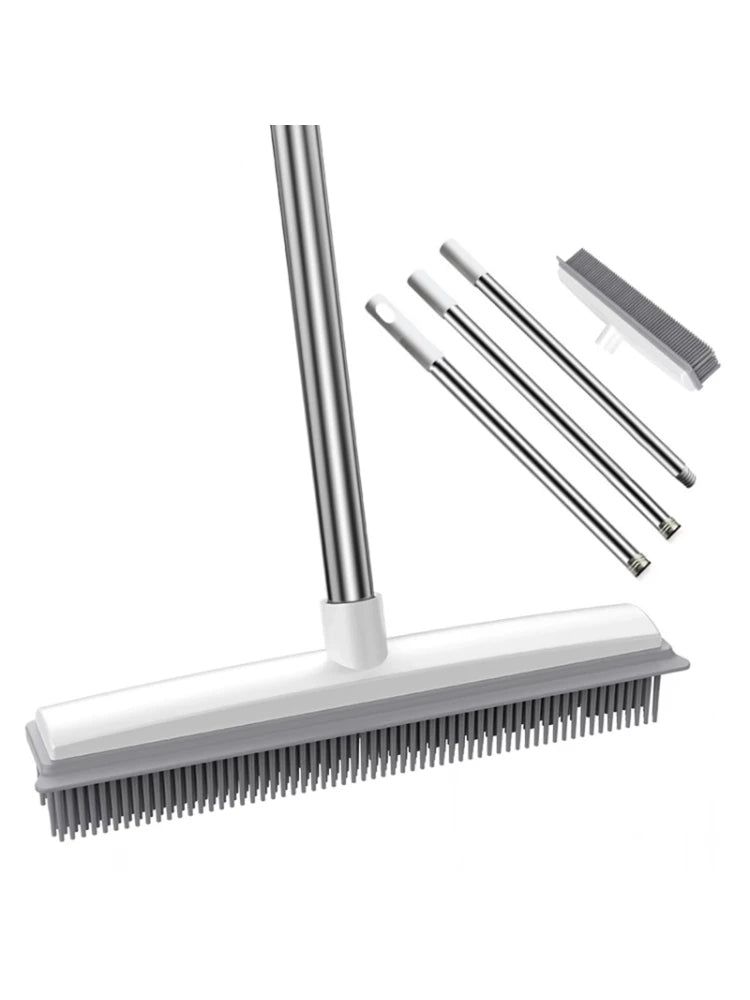 Découvrez ce balai en caoutchouc spécialement conçu pour éliminer efficacement les poils d’animaux sur tapis, sols en bois dur et autres surfaces délicates. Sa conception ingénieuse, avec un râteau muni de raclette intégrée et un manche long ergonomique, offre une solution de nettoyage performante et sans rayures.