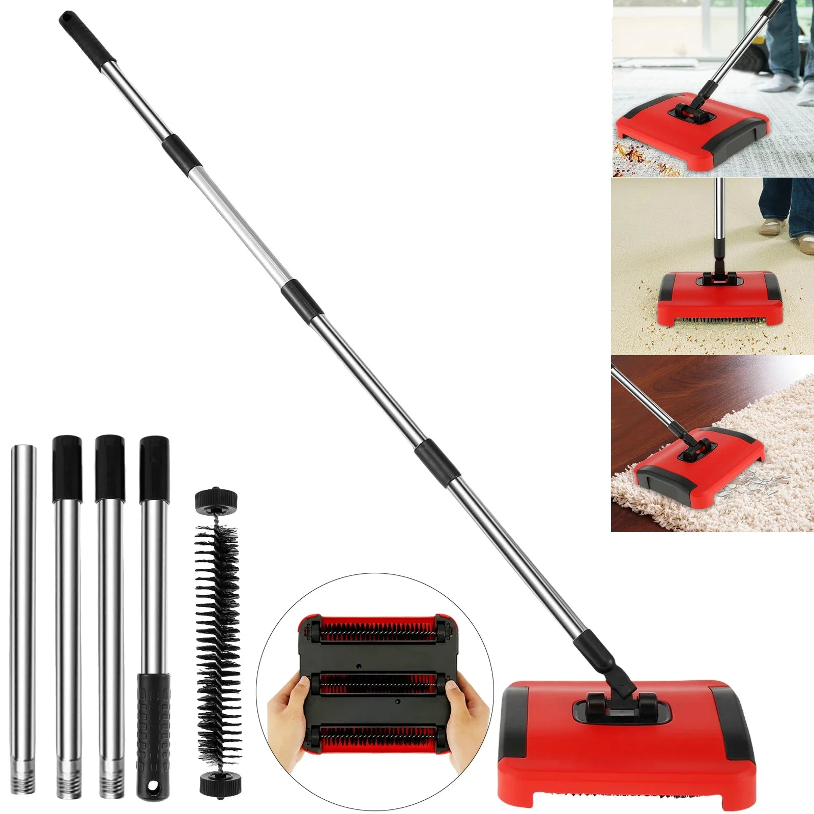 • Simple à utiliser : Poussez et déplacez la balayeuse en avant et en arrière pour activer la rotation des brosses.