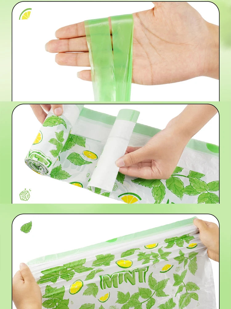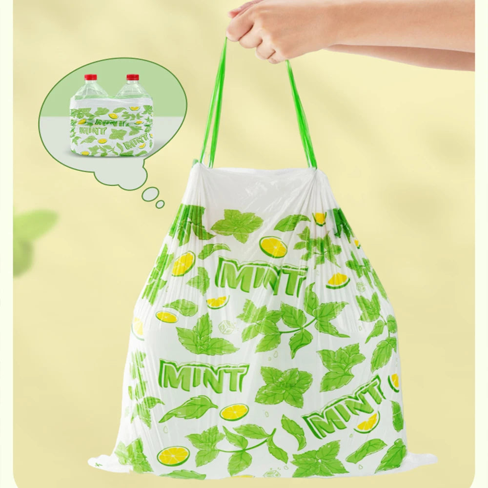 Découvrez l'alliance parfaite entre innovation et praticité avec ce sac poubelle épais, conçu pour sublimer votre cuisine. Son parfum rafraîchissant de menthe et son imprimé unique, évoquant un processeur de résidus alimentaires, apportent une touche design et moderne à votre quotidien.