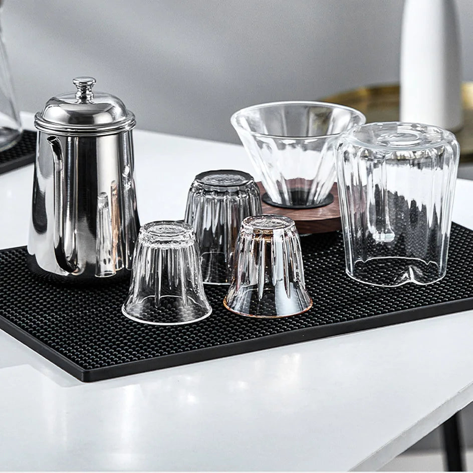 Il suffit de déposer le tapis sur le comptoir ou le bar pour bénéficier instantanément d’un support antidérapant et protecteur. Sa conception intelligente permet un nettoyage rapide à l’eau savonneuse, garantissant ainsi une hygiène impeccable, essentielle pour le service de boissons et de vaisselle.