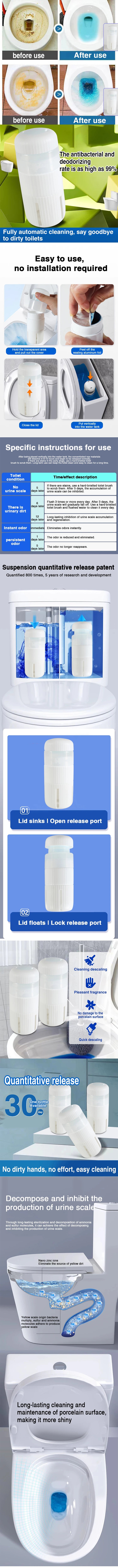 Découvrez l'artefact révolutionnaire qui transforme l'entretien de vos toilettes en une expérience simple et rafraîchissante. Conçu pour offrir une hygiène impeccable, il combine un système de nettoyage automatique avec un déodorant aux bulles bleues pour neutraliser efficacement les mauvaises odeurs et prévenir l'accumulation de tartre.