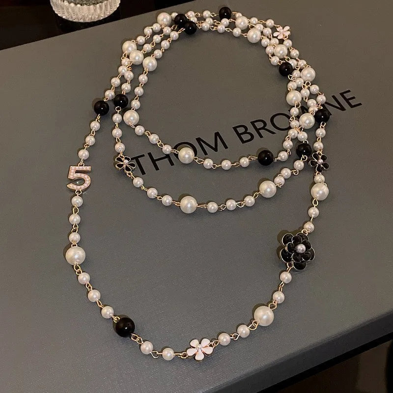 Ce collier de luxe à deux rangées, orné de perles et de détails floraux, est un véritable bijou d'élégance pour femme. Inspiré par l'iconique style numéro 5, il se distingue par son design raffiné et intemporel. Les perles délicates, disposées sur deux couches, offrent une sophistication subtile, tandis que la touche florale ajoute un charme romantique à ce collier exceptionnel. Parfait pour toutes les occasions, ce bijou saura rehausser n'importe quelle tenue, qu'il s'agisse d'un événement formel ou d'une soirée chic.