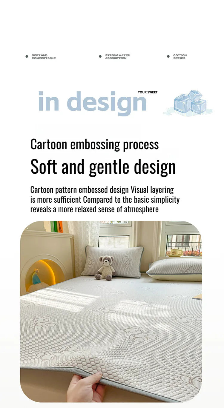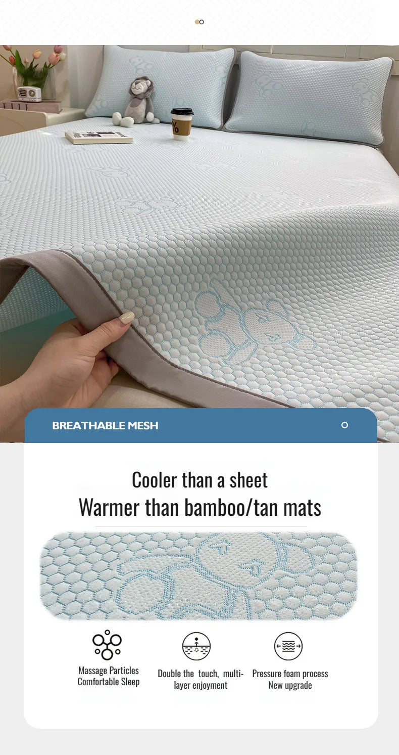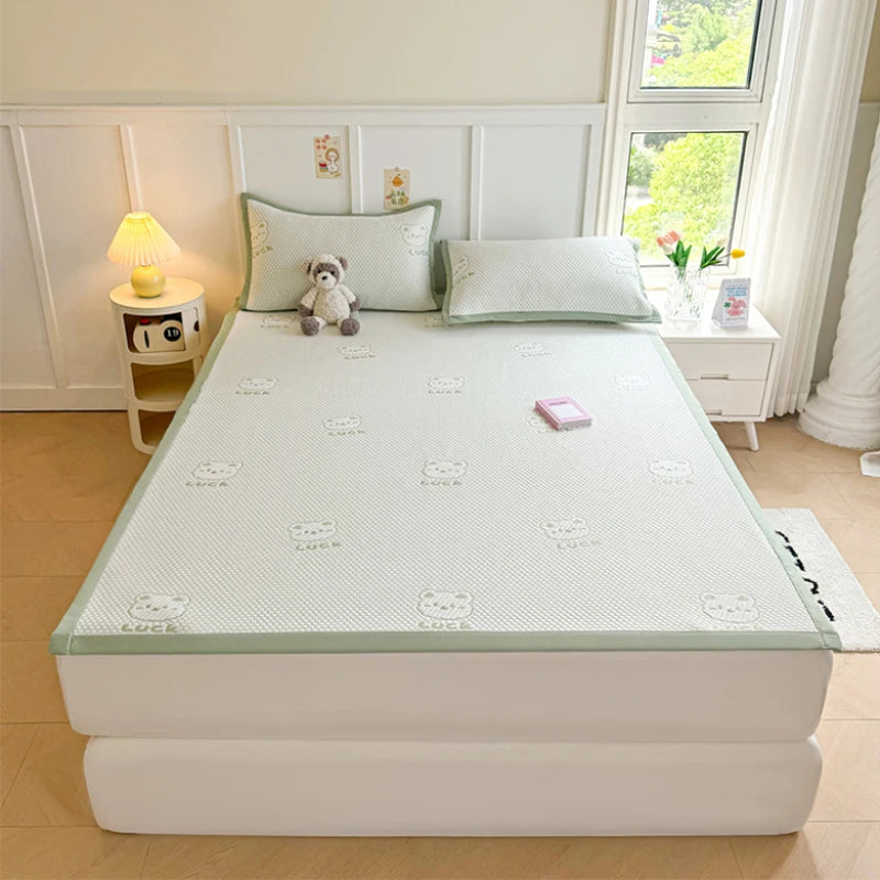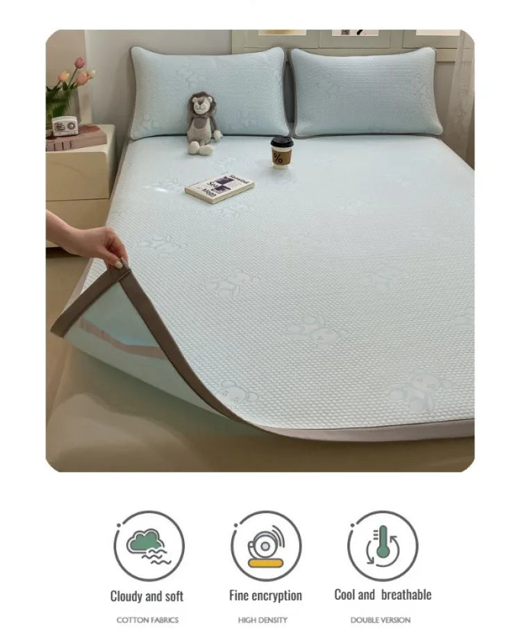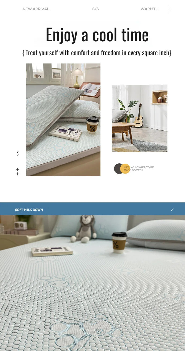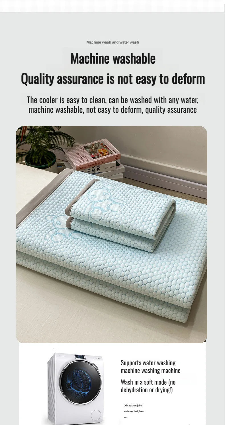 Ce tapis en soie glacée se distingue par sa capacité unique à réguler la température et à évacuer la sueur, assurant ainsi une fraîcheur continue toute la nuit. Sa conception respirante vous garantit un repos optimal même pendant les chaudes nuits d’été, tandis que sa compatibilité avec le lavage en machine facilite grandement son entretien.