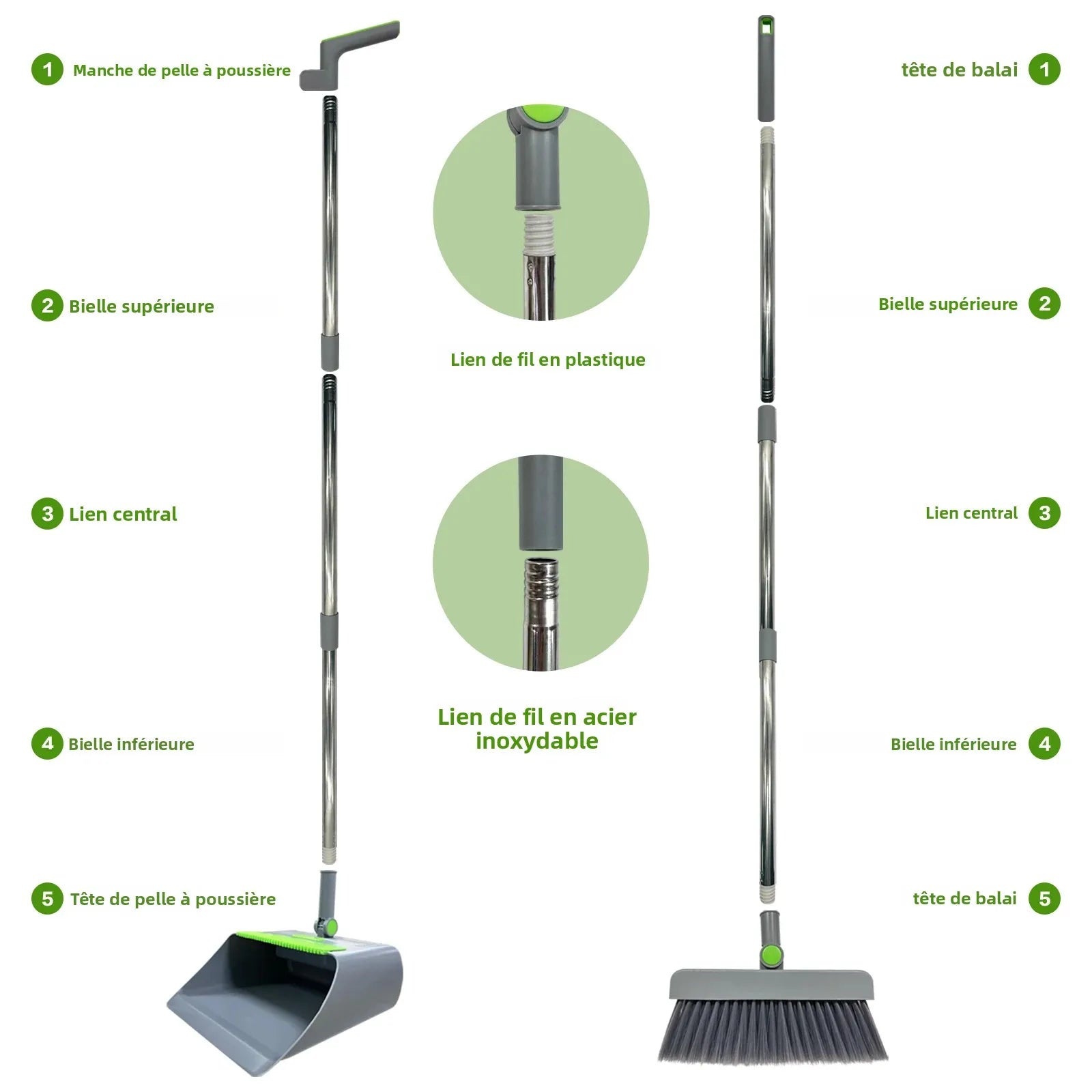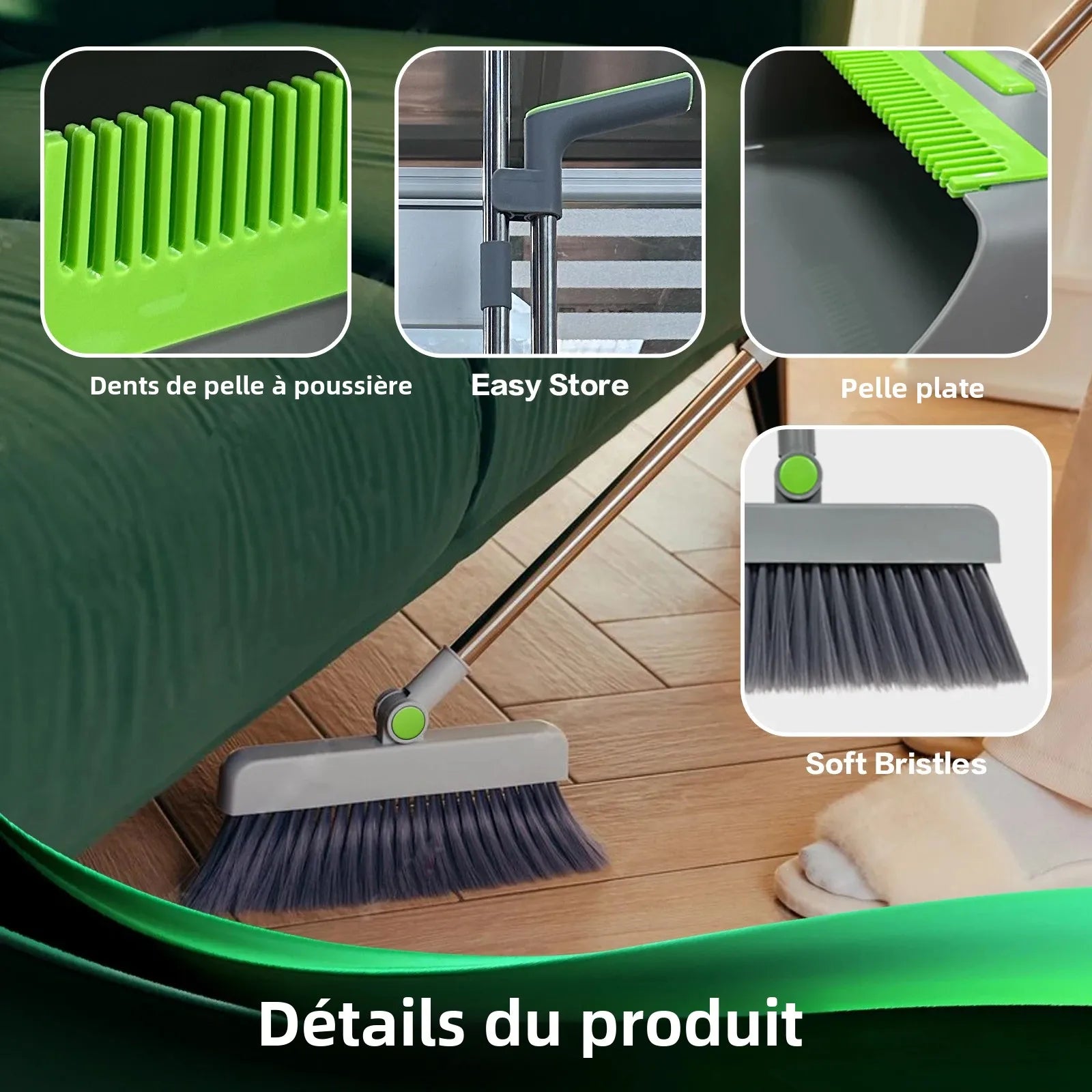 • Accessoires inclus : Ensemble complet composé du balai magnétique rotatif et de la pelle à poussière intégrée.