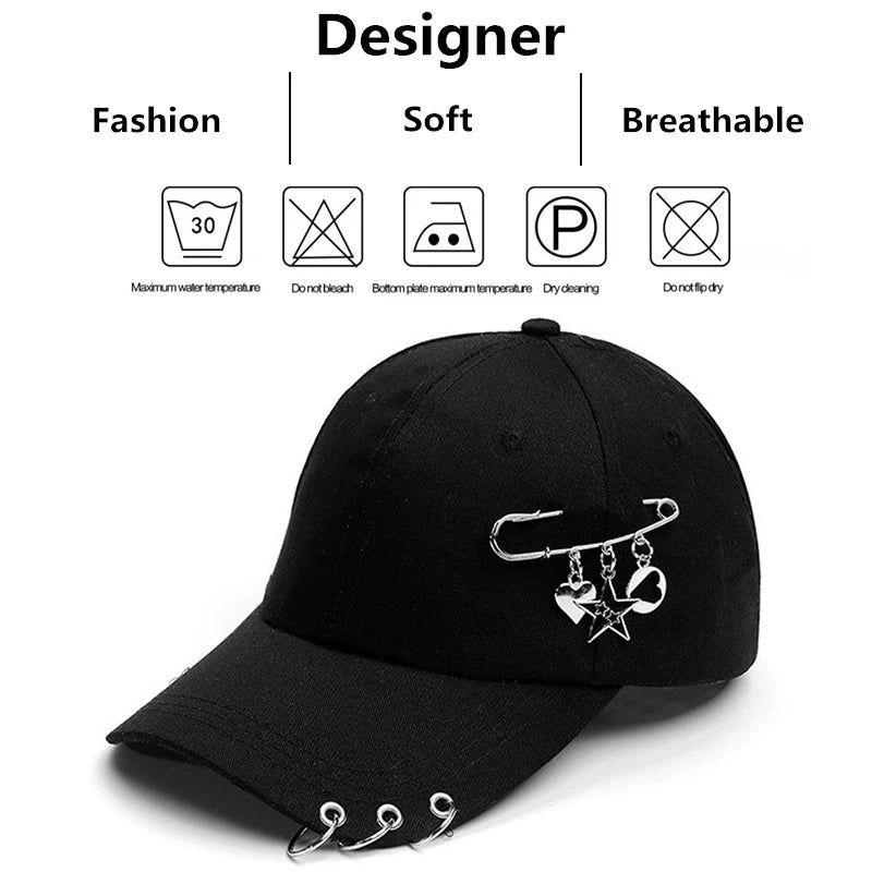• Design : Casquette de baseball agrémentée d’un anneau en fer et d’un motif étoile, apportant une touche unique et tendance.