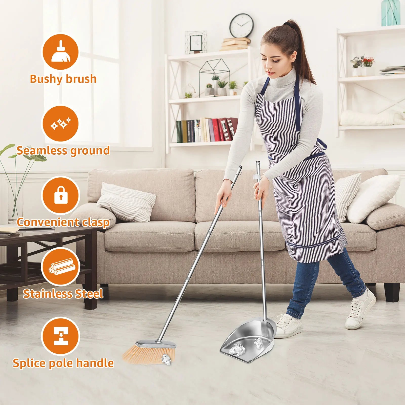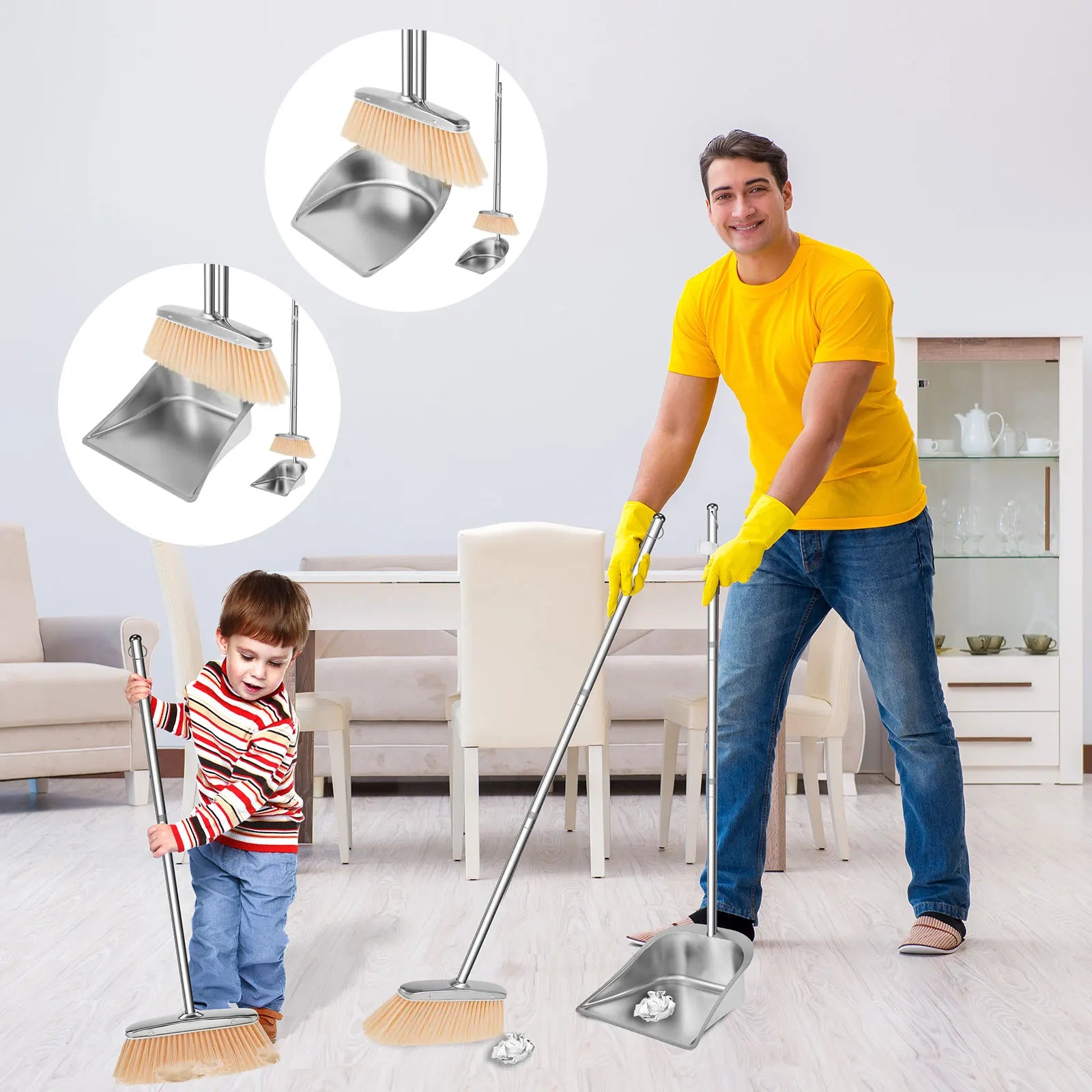 Découvrez cet ensemble de balai et pelle à poussière conçu pour transformer vos sessions de nettoyage en une expérience efficace et moderne. Confectionné avec soin à partir d’acier inoxydable et de matériaux PET, ce duo allie robustesse, légèreté et design ergonomique, répondant aux exigences des environnements domestiques les plus raffinés.
