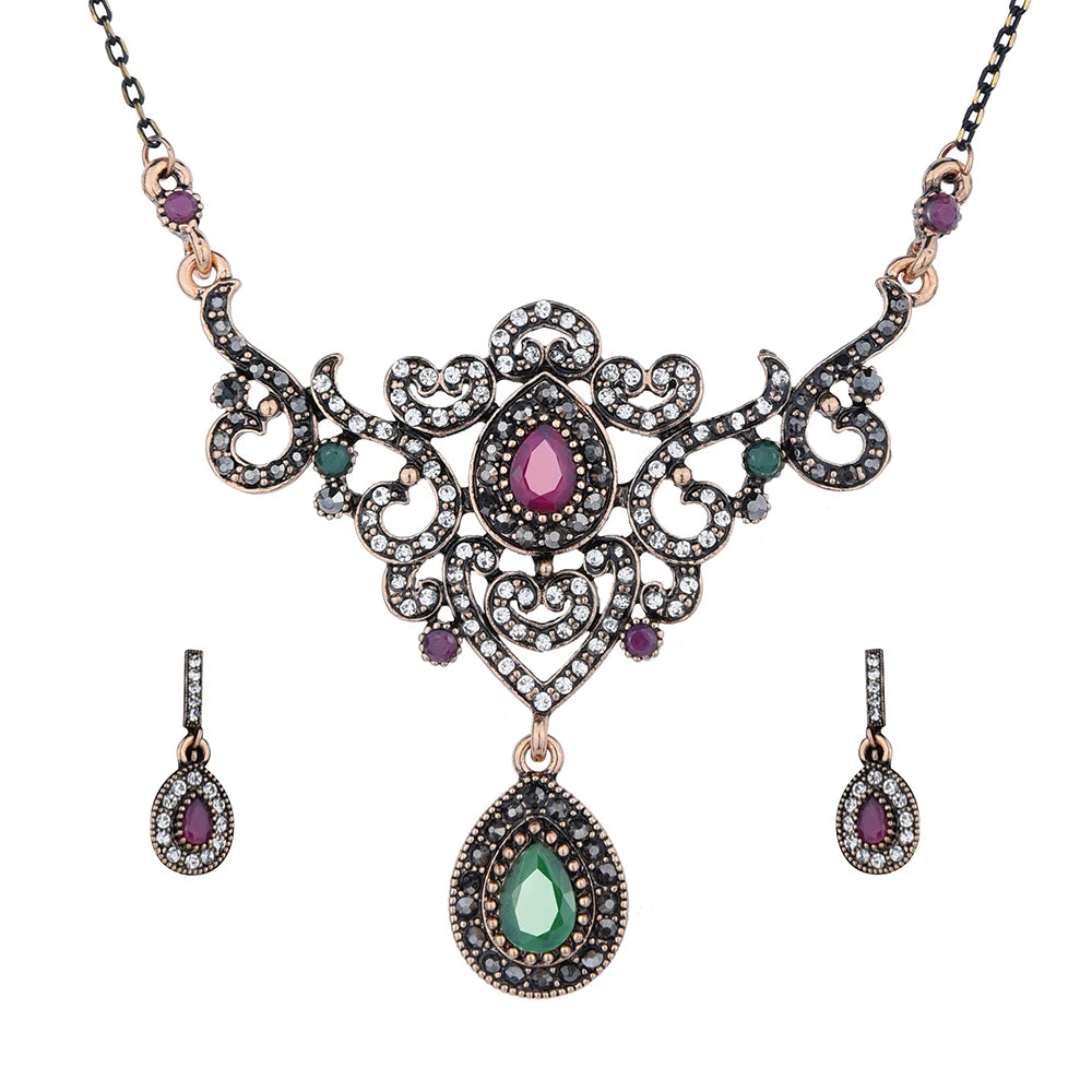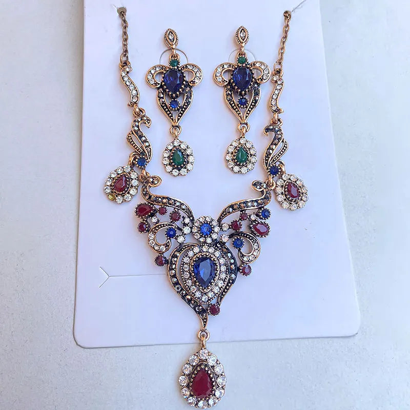 Découvrez l’élégance intemporelle de cet ensemble de bijoux spécialement conçu pour sublimer la tenue de la mariée. Conjuguant un design ethnique et vintage avec une touche de modernité, ce coffret exceptionnel allie raffinement et audace pour offrir un look unique lors des occasions les plus importantes.