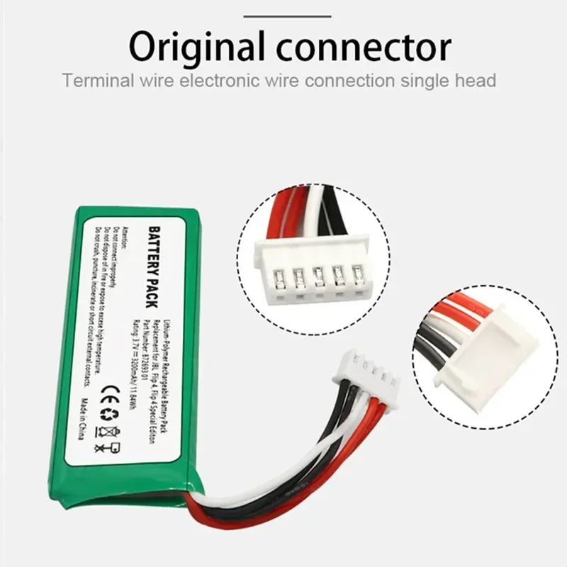 Cette batterie se remplace aisément dans votre haut-parleur JBL Flip 4. Veuillez vérifier soigneusement le modèle de prise avant achat afin de garantir la compatibilité. Celle-ci s’intègre directement à votre lecteur MP3/MP4 ou système de jeu vidéo, vous permettant de profiter d’une expérience sans interruption.