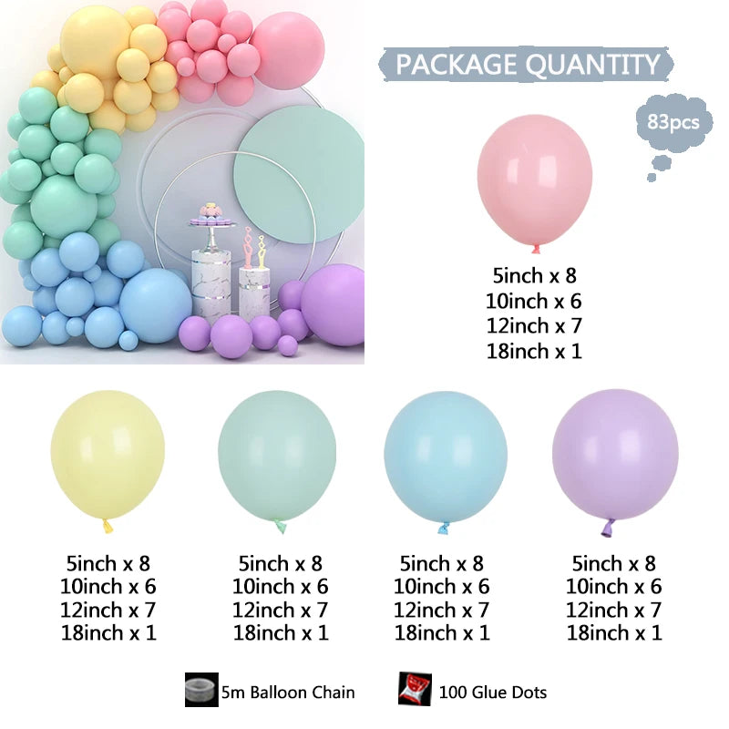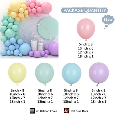 Transformez vos événements spéciaux en moments magiques avec notre kit de guirlande de ballons pastel. Composé de 83 ballons de différentes tailles, allant de 5 à 18 pouces, ce kit offre une palette de couleurs douces et apaisantes, parfaites pour les baby showers, les mariages ou toute autre célébration. Créez une ambiance joyeuse et élégante avec cette guirlande qui ajoutera une touche de rêve à votre décoration.