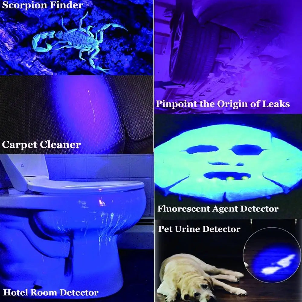 Lampe Torche UV 100 LEDs LGUIY - Détecteur UV 395nm Chiens Chats Insectes