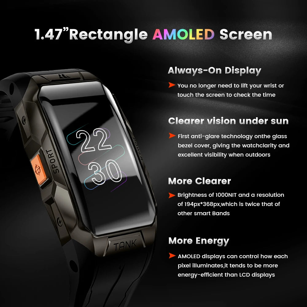 Montre Connectée KOSPET TANK X1 - Écran AMOLED 1.47", Suivi Fitness 3D