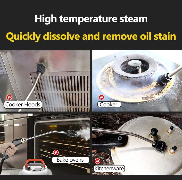 Conçu pour fonctionner sur des tensions de 110V et 220V, ce nettoyeur à vapeur est polyvalent et s'adapte à vos besoins. Grâce à sa capacité à générer de la vapeur haute température, il déloge la saleté et les graisses incrustées tout en désinfectant les surfaces, garantissant une propreté éclatante et une stérilisation optimale.