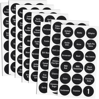 - Dimensions des étiquettes : Adaptées aux bocaux et contenants standard pour épices