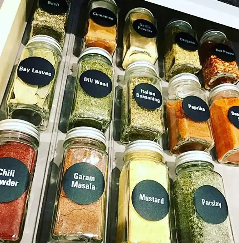 - Organisation optimisée : Ces étiquettes permettent de garder vos épices et condiments parfaitement organisés, afin que vous puissiez les retrouver rapidement et facilement.