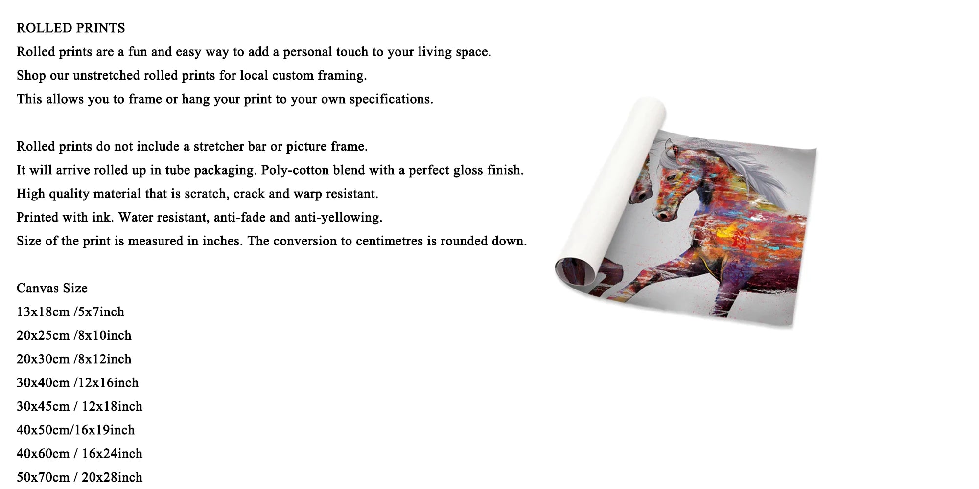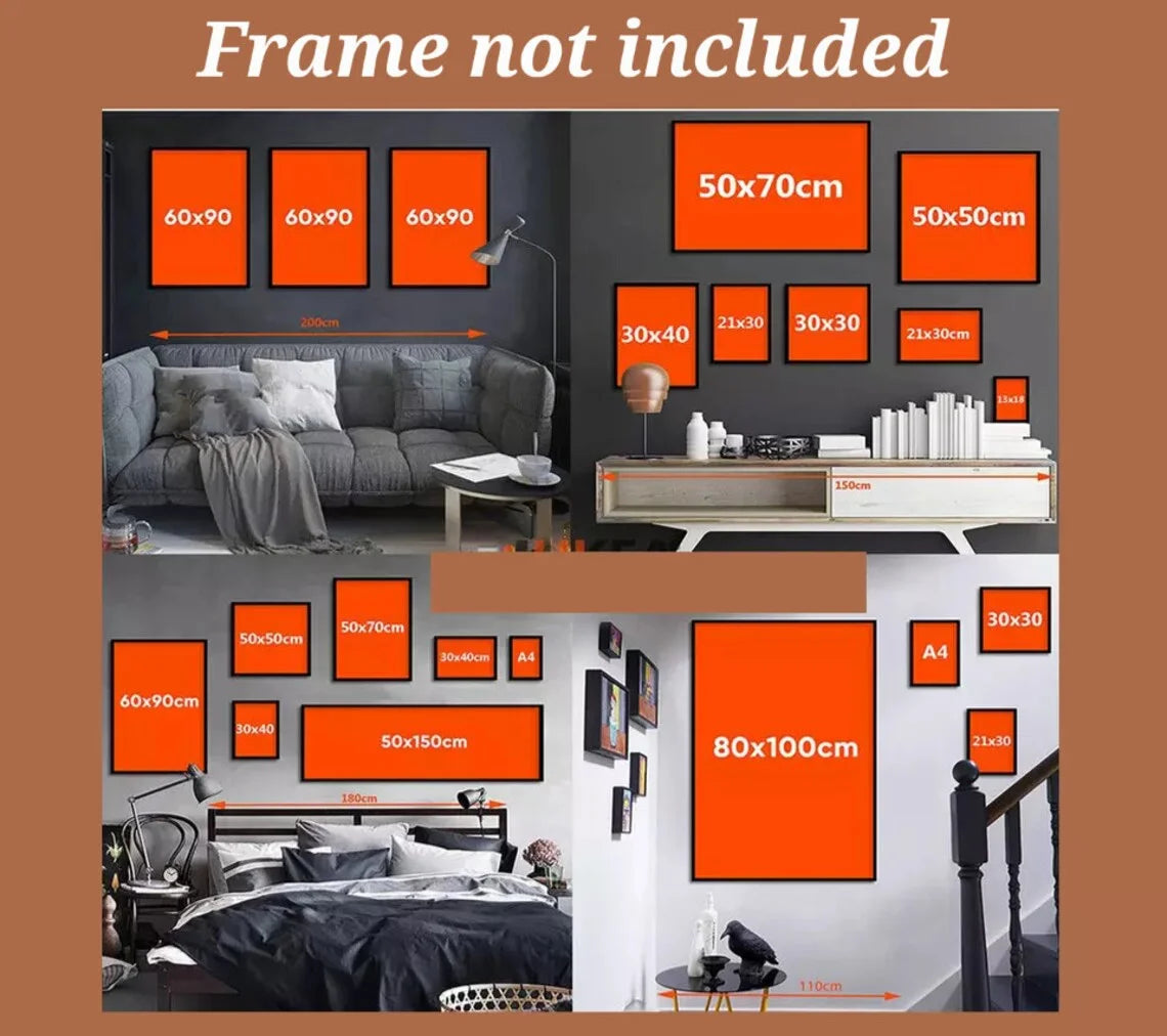 La toile, conçue sans cadre pour limiter les coûts et risques de dommages, peut être adaptée sur mesure selon vos exigences. Pour toute demande de personnalisation ou pour obtenir une bordure blanche, il vous suffit de nous contacter avant l’expédition. La fabrication en Chine et l’emballage soigné dans un tube PVC assurent une livraison sécurisée et rapide.