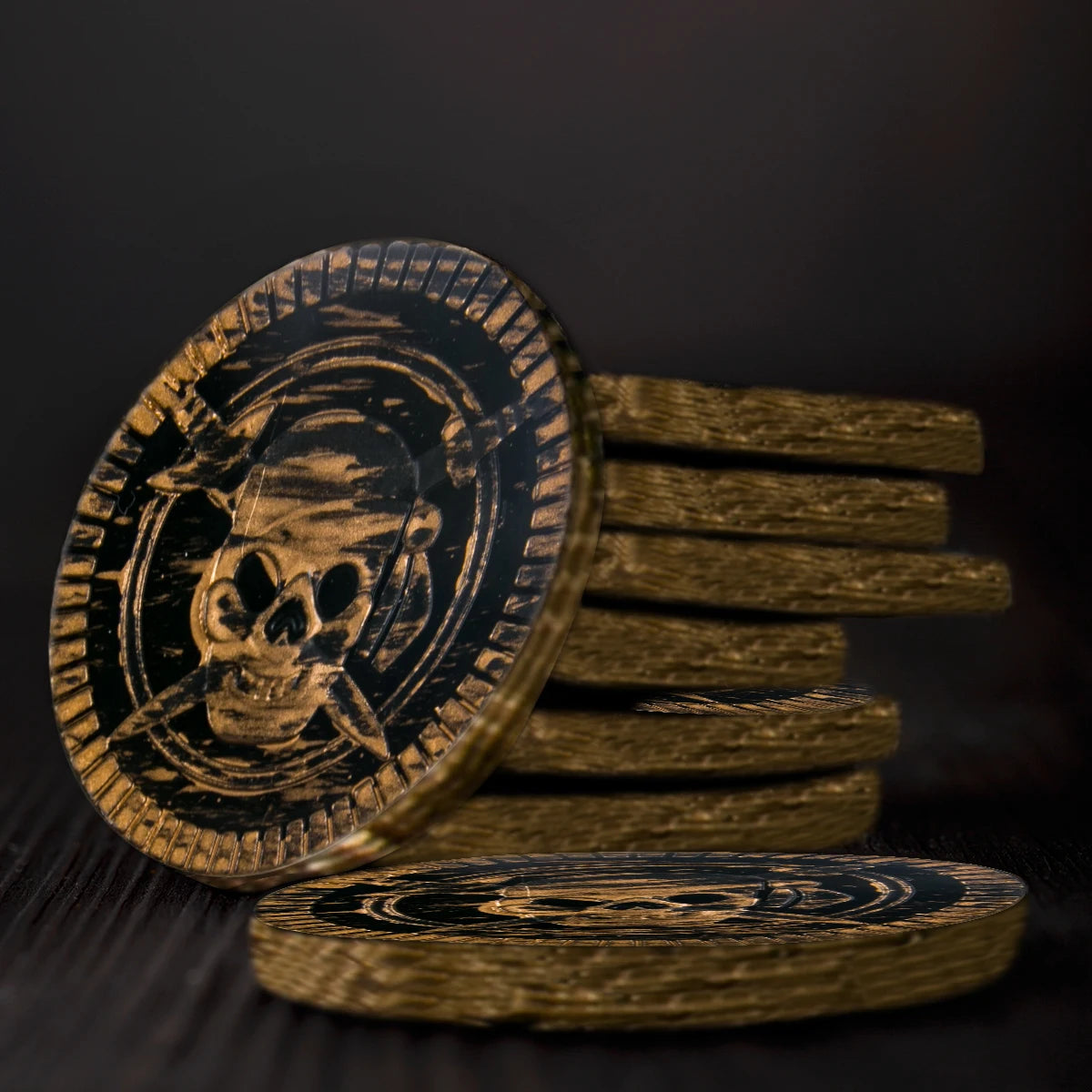 Ces pièces se placent aisément dans toutes vos mises en scène : disposez-les sur une table, intégrez-les à un coffre au trésor ou utilisez-les pour personnaliser une fête thématique. Leur légèreté facilite le transport et la répartition dans vos décorations.
