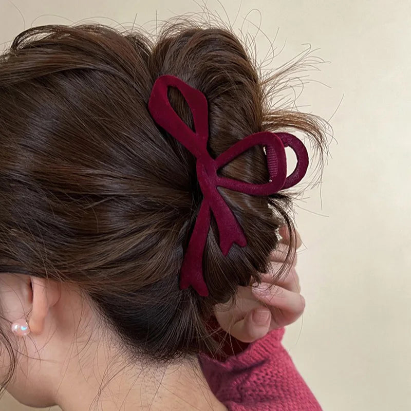 Pinces à Cheveux Velours Rouge avec Nœud - Élégantes Clips Automne/Hiver pour Femmes