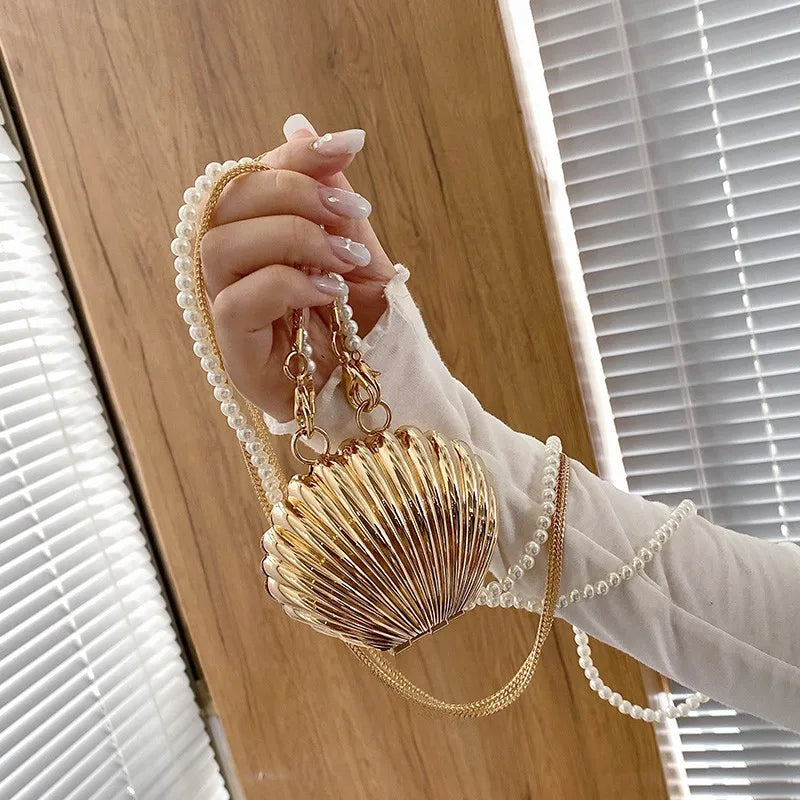 - Un design luxueux et tendance : Sa forme raffinée et ses détails en perles et chaînes en font un véritable accessoire haute couture.