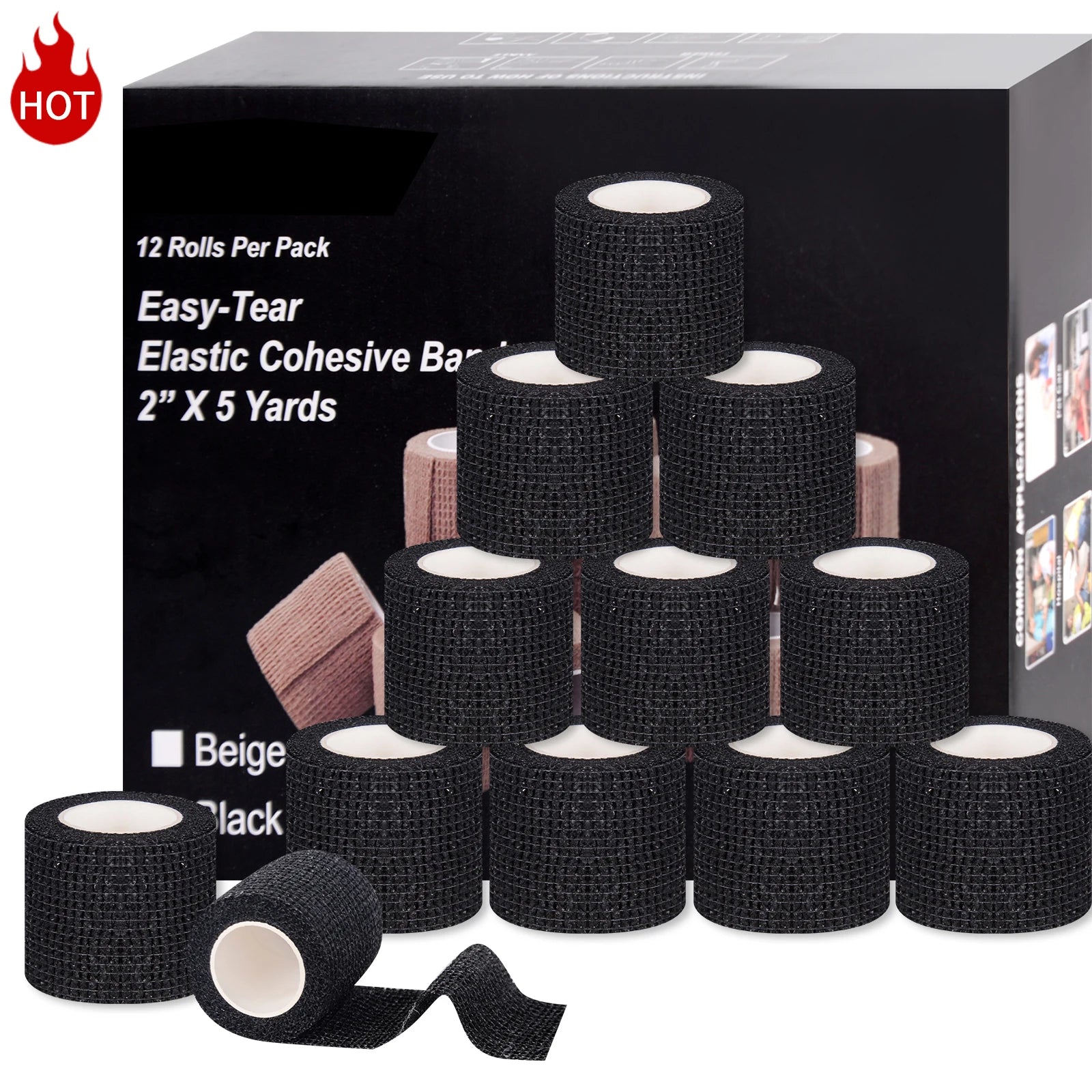 - 12 rouleaux de bandage auto-adhésif élastique (quantité par paquet)