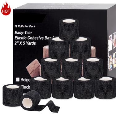 Bandage Auto-Adhésif Élastique pour Sports et Tatouages - Ensemble de 12 Rouleaux