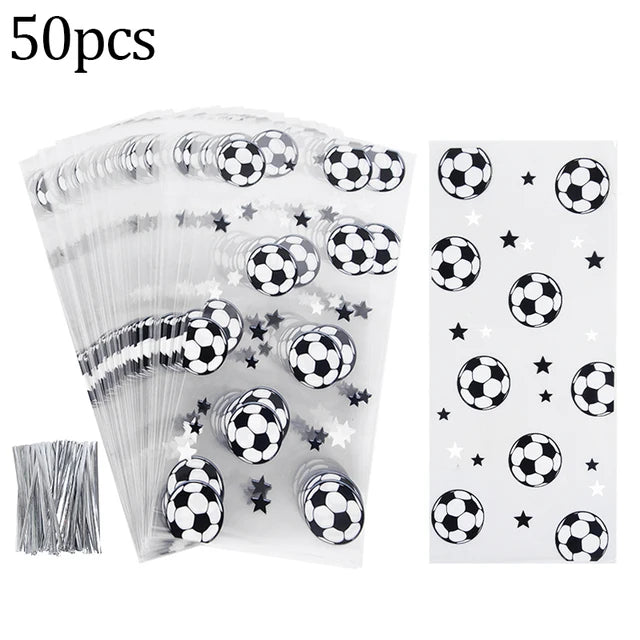 Remplissez les sachets de bonbons et de petits cadeaux, puis distribuez-les lors de la fête. Les motifs de football apporteront une ambiance joyeuse et sportive à votre événement.