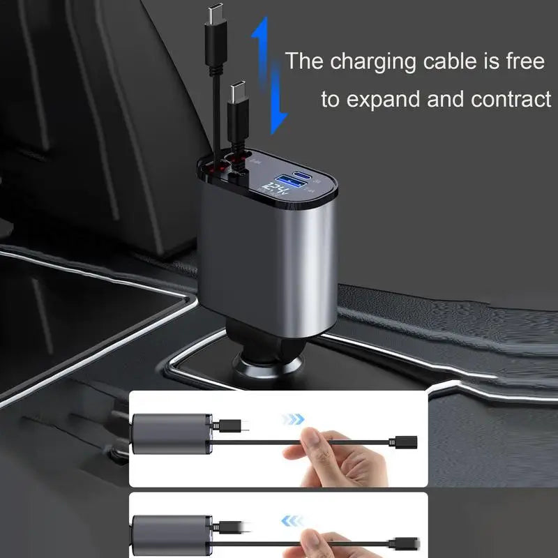 Profitez d’une charge rapide et efficace en voiture grâce à l’adaptateur allume-cigare 4 en 1. Doté de 120W de puissance et de 4 ports USB, cet accessoire est conçu pour charger plusieurs appareils simultanément, idéal pour les longs trajets, les voyages en famille ou les professionnels de la route.