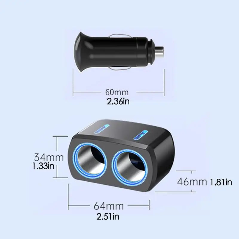 L'adaptateur répartiteur de chargeur voiture 12/24V est un accessoire indispensable pour assurer une recharge rapide et sécurisée de vos appareils en déplacement. Conçu pour une utilisation universelle, il permet d'alimenter simultanément deux dispositifs via l'allume-cigare de votre véhicule, offrant ainsi un confort optimal lors de vos trajets.