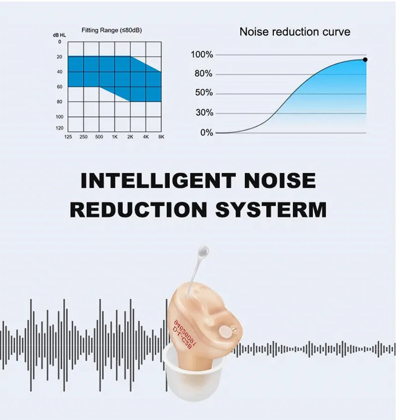 • Discrétion totale grâce à sa conception CIC (appareillage intra-auriculaire) invisible