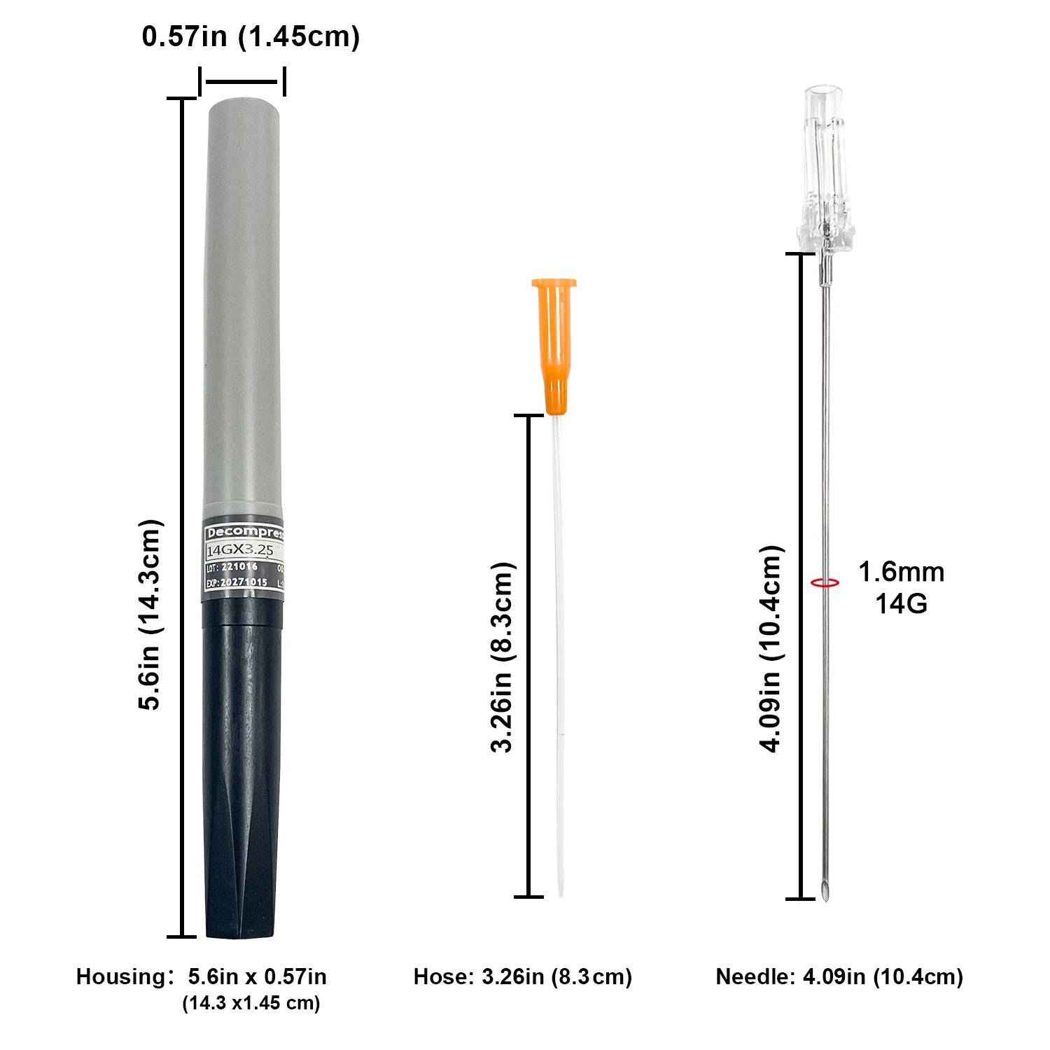 - Accessoires inclus : 1 aiguille de décompression thoracique 14G avec boîtier et capuchon hexagonal texturé