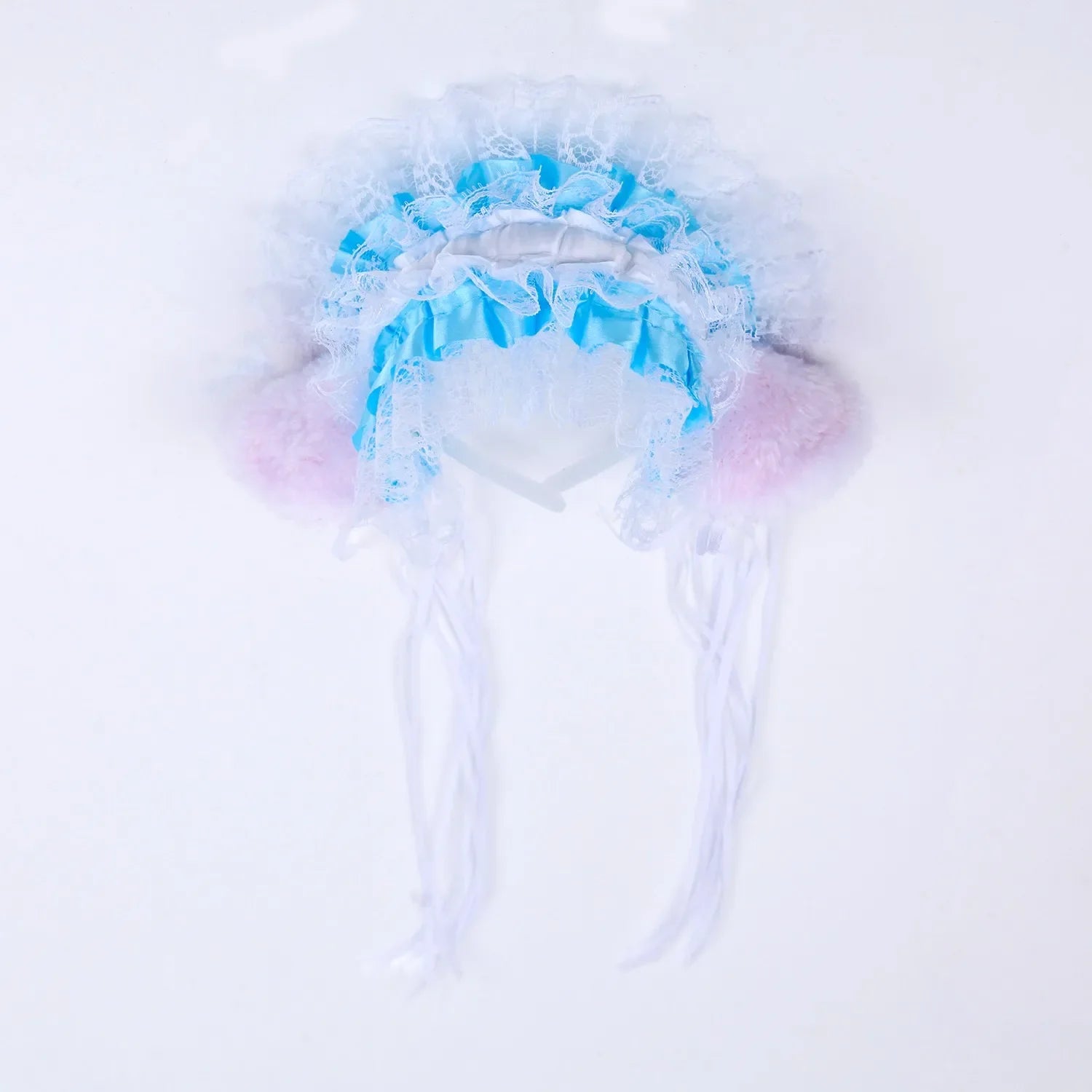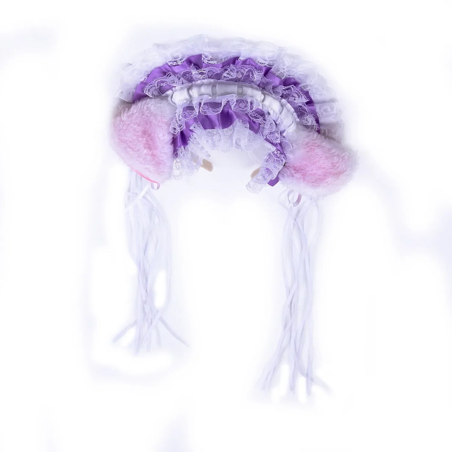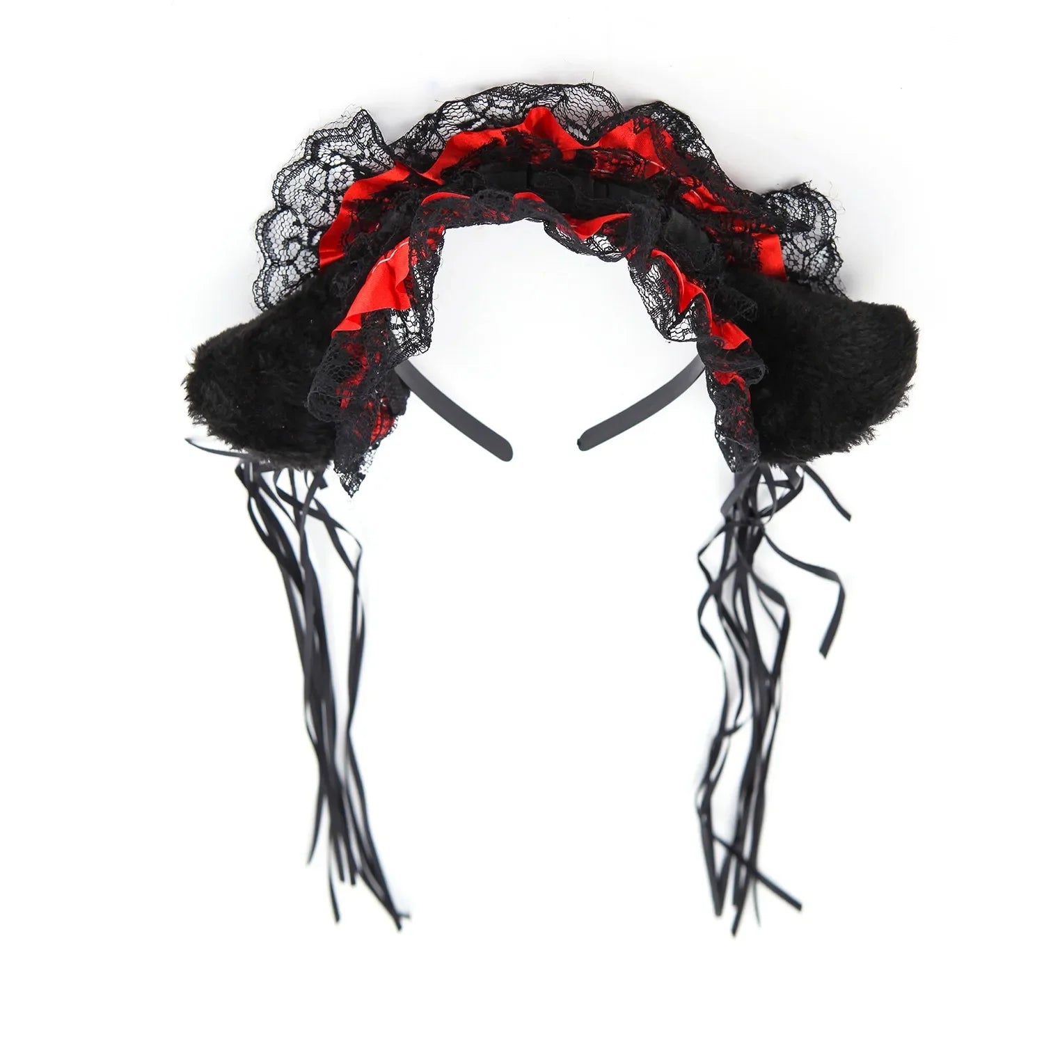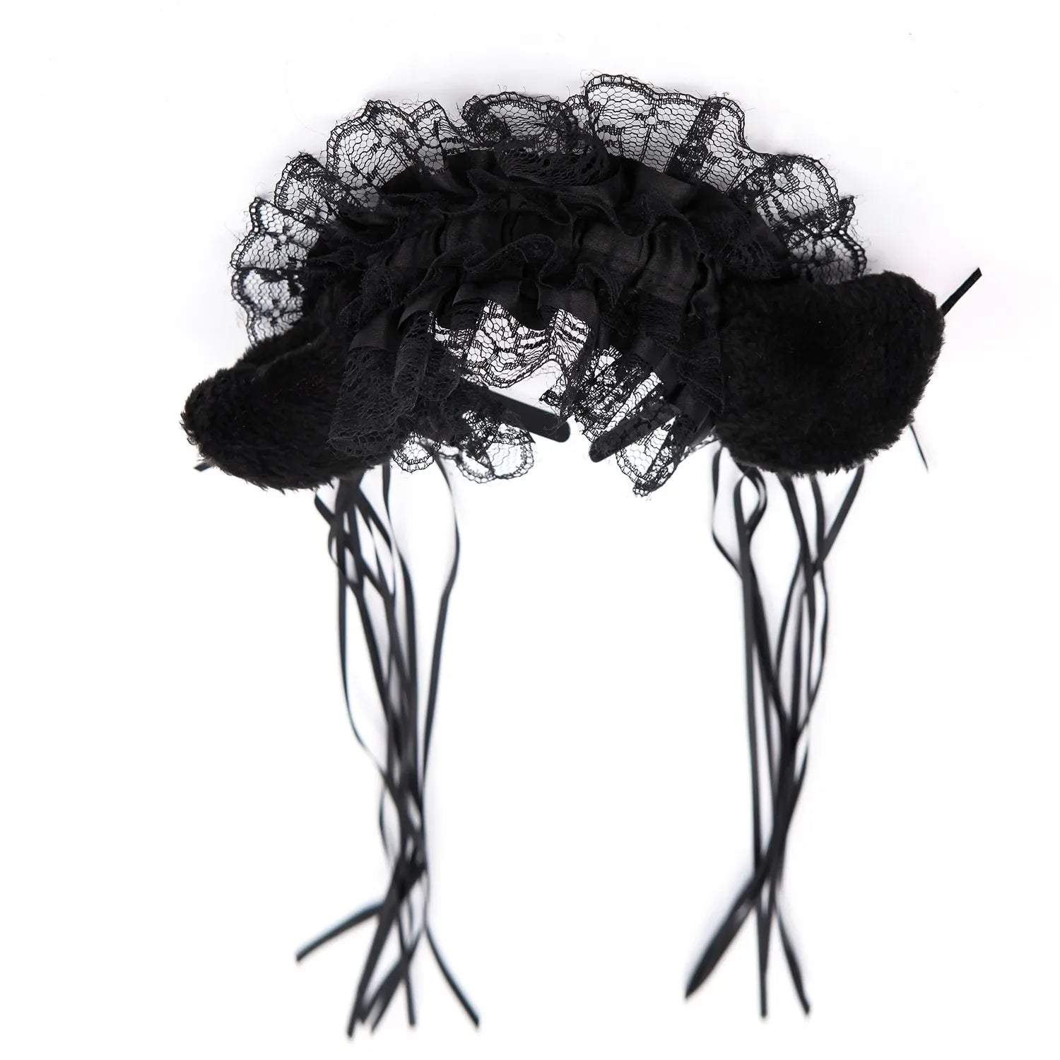 Bandeau Gothique Lolita Maid - Dentelle Volantée, Oreilles de Chat Peluche, Noeud Ruban, Clochette