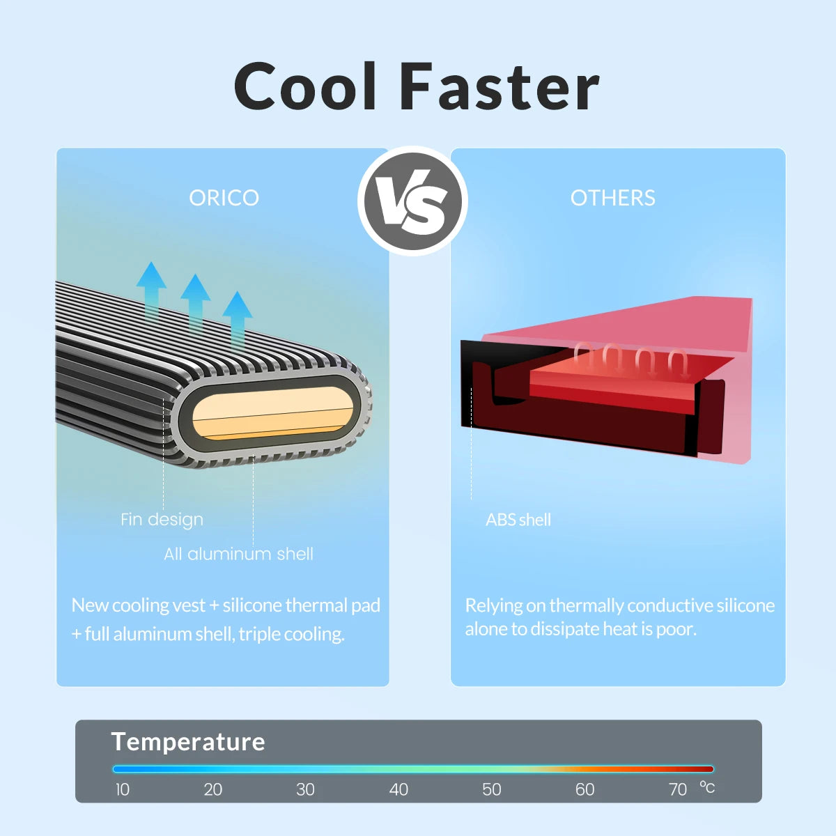 N'attendez plus pour optimiser vos transferts de données. Commandez dès maintenant le boîtier SSD NVMe M.2 Aluminium Sans Outils ORICO et profitez de performances exceptionnelles en toute simplicité !
