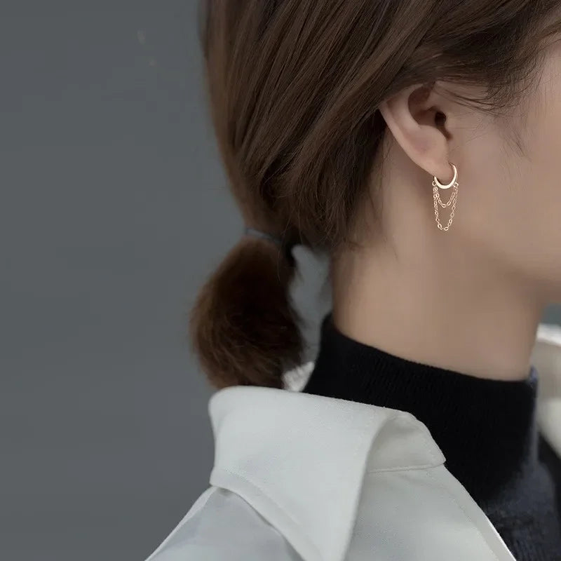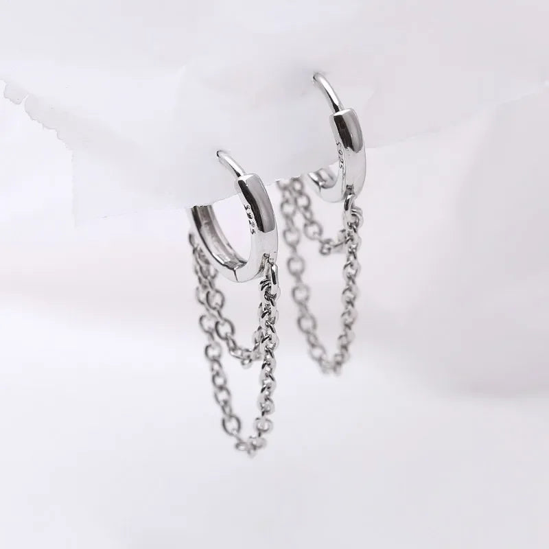 Boucles d'Oreilles Créoles Argent Sterling 925 Double Couche Pompon Femmes – Élégance et Modernité