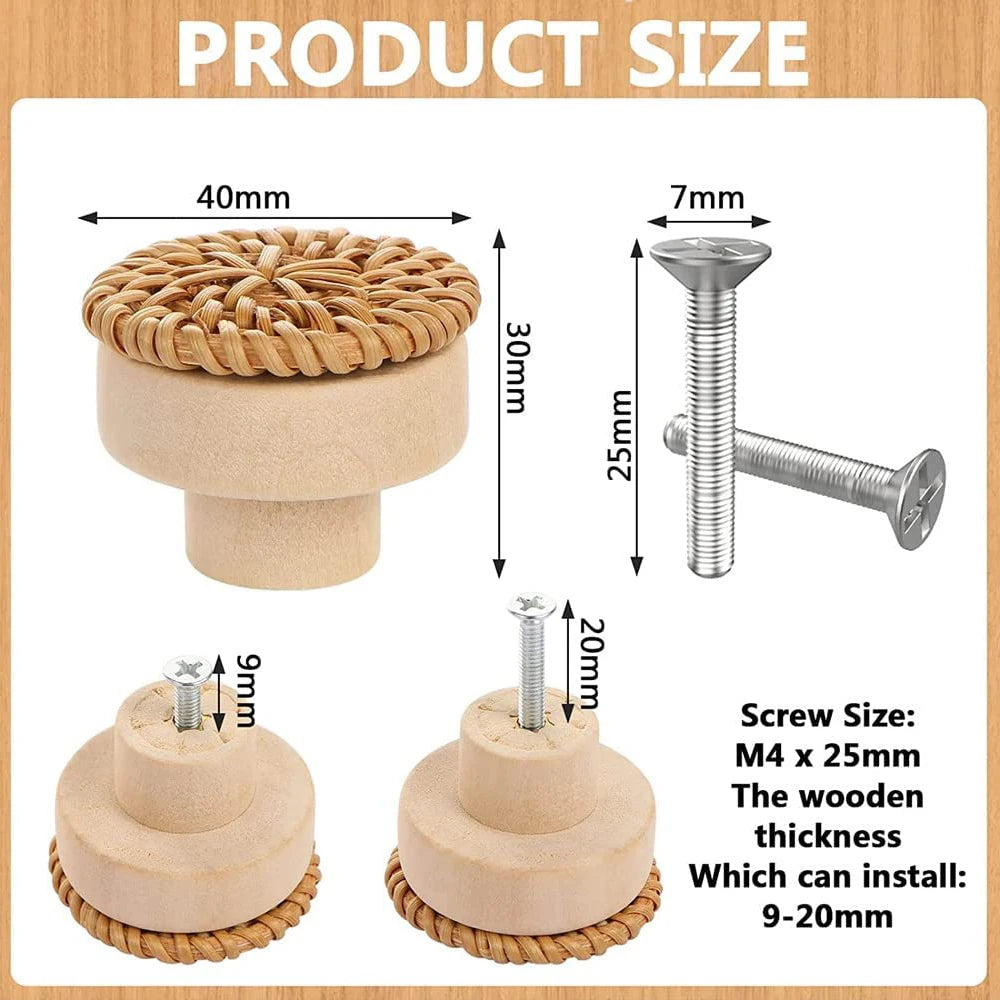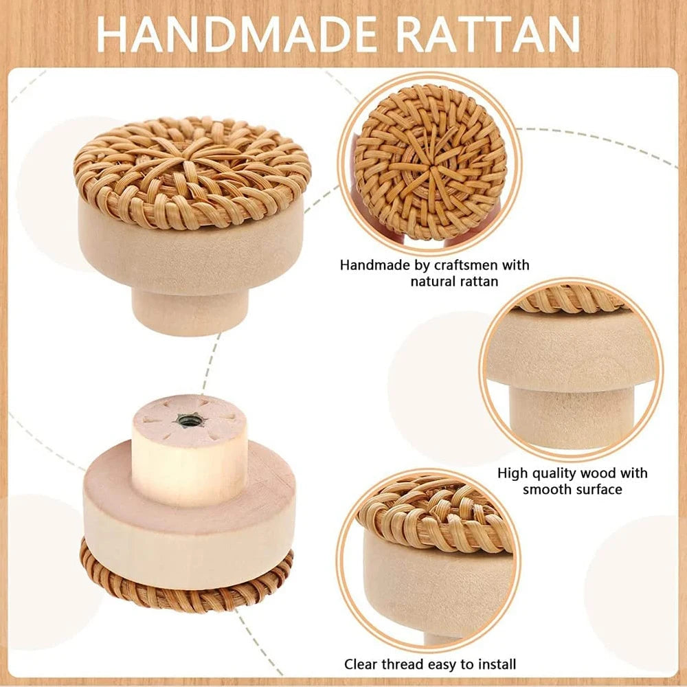 Boutons de Tiroir en Bois de Rotin – Élégance et Authenticité