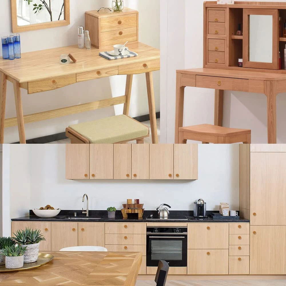 Fixez facilement ces poignées en bois rondes sur vos meubles à l’aide des vis fournies. Grâce à leur conception ergonomique, elles offrent une prise en main confortable et une fixation solide.