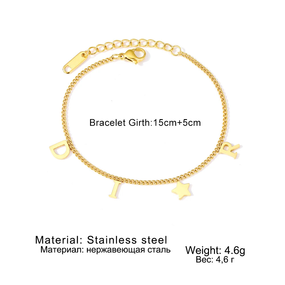 Bracelet en Acier Inoxydable Vintage - Élégant Pendentif Étoile et Lettre