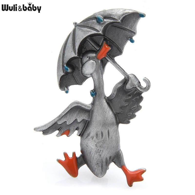 La broche vintage Wuli&baby en forme de canard avec un parapluie apporte une touche de charme et de nostalgie à votre tenue. Ce bijou unisexe, disponible en deux couleurs élégantes, représente un canard joyeux, ajoutant une note ludique et raffinée à vos vêtements.
