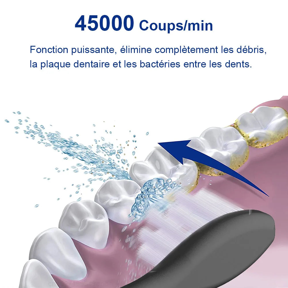 - Nettoyage en profondeur : Élimination efficace de la plaque dentaire