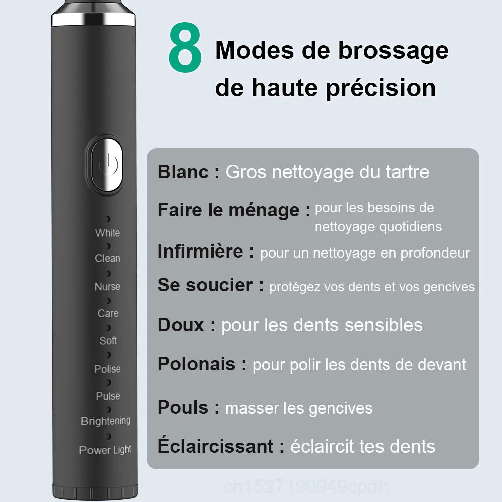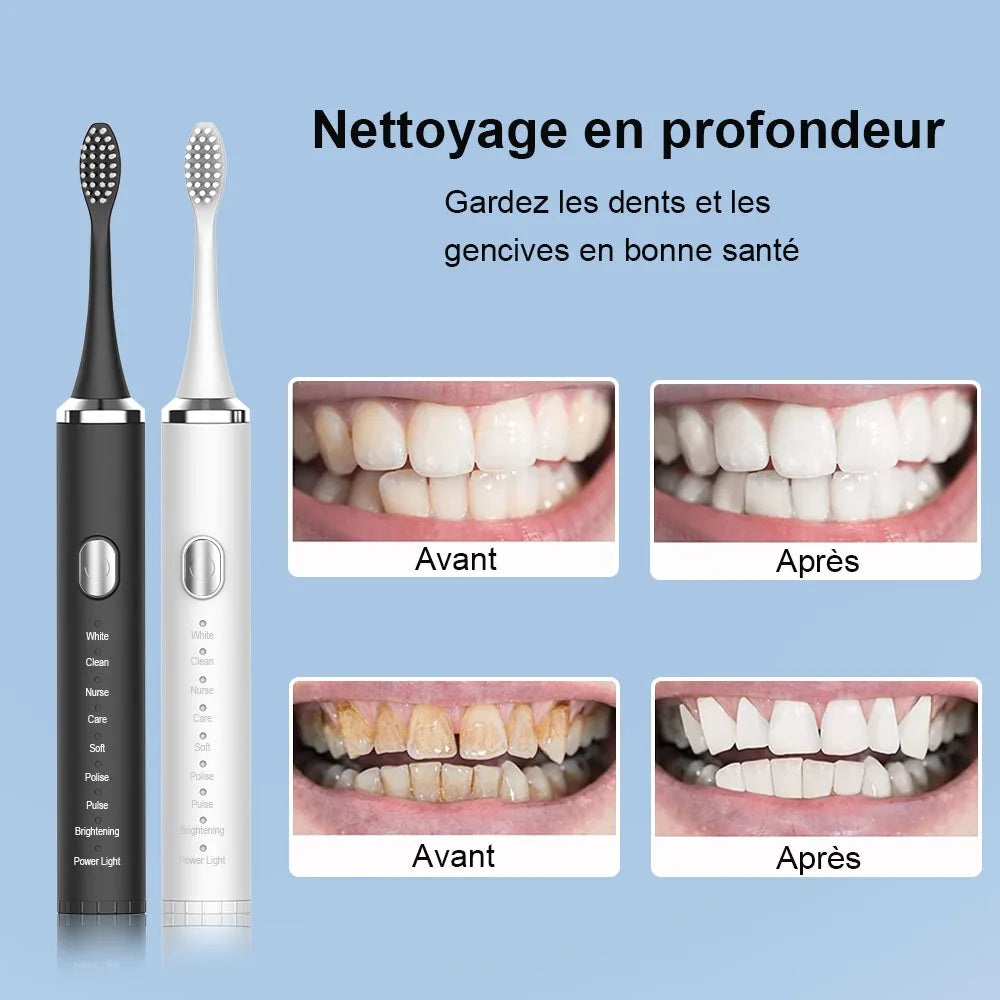 Brosse à dents électrique Sonic Vibration - Nettoyage dentaire, blanchiment - USB rechargeable