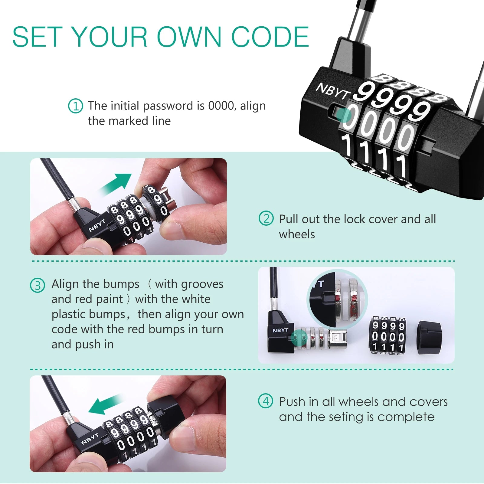 - Tournez les cadrans pour aligner votre code secret et déverrouiller.