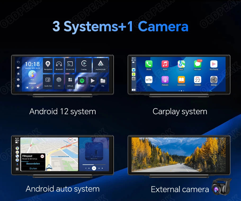 Caméra Dash Caméra Android 12 T30 10.26 pouces - Carplay, Android Auto, GPS, WIFI 5G