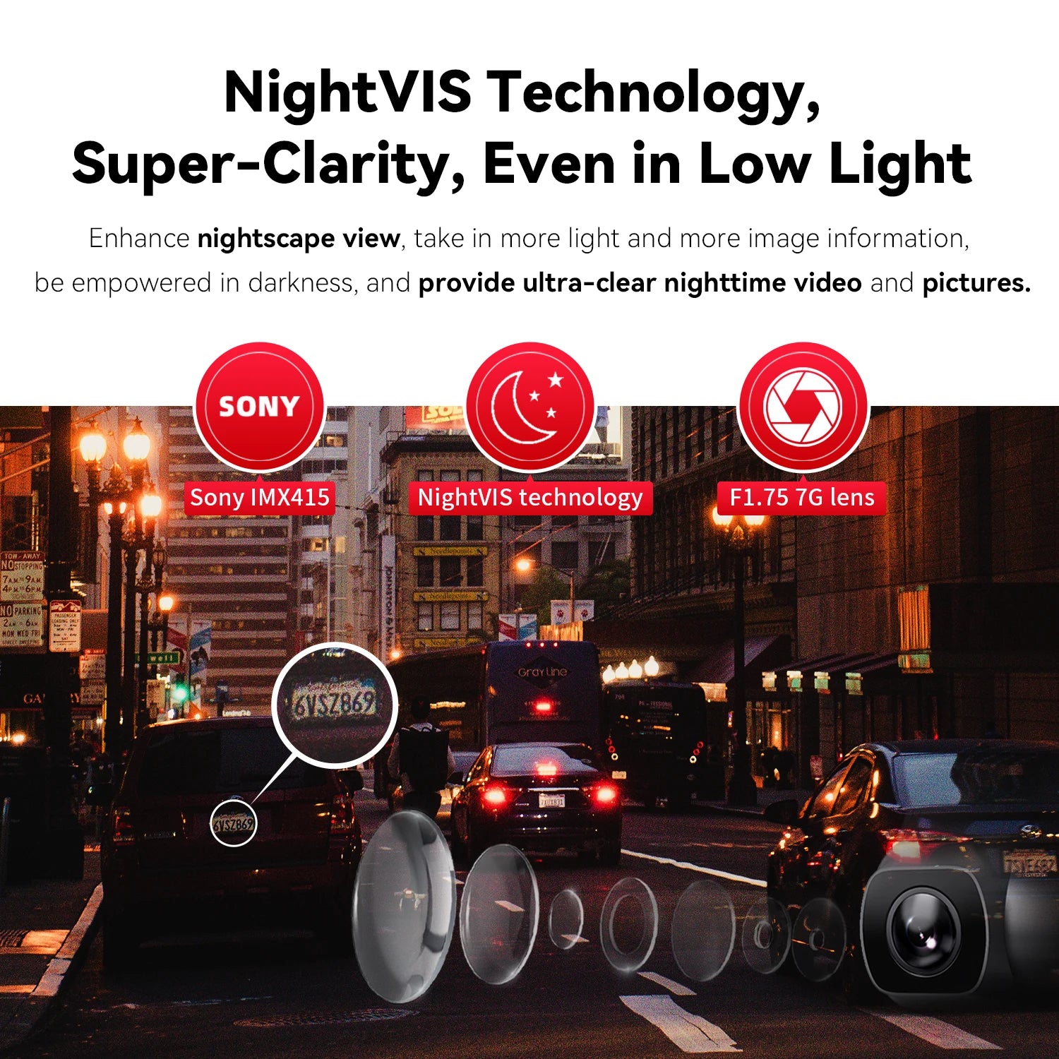 - Double enregistrement 4K + 1080P : Caméra avant 4K UHD (Sony IMX415) et caméra arrière 1080P pour une couverture complète de la route.